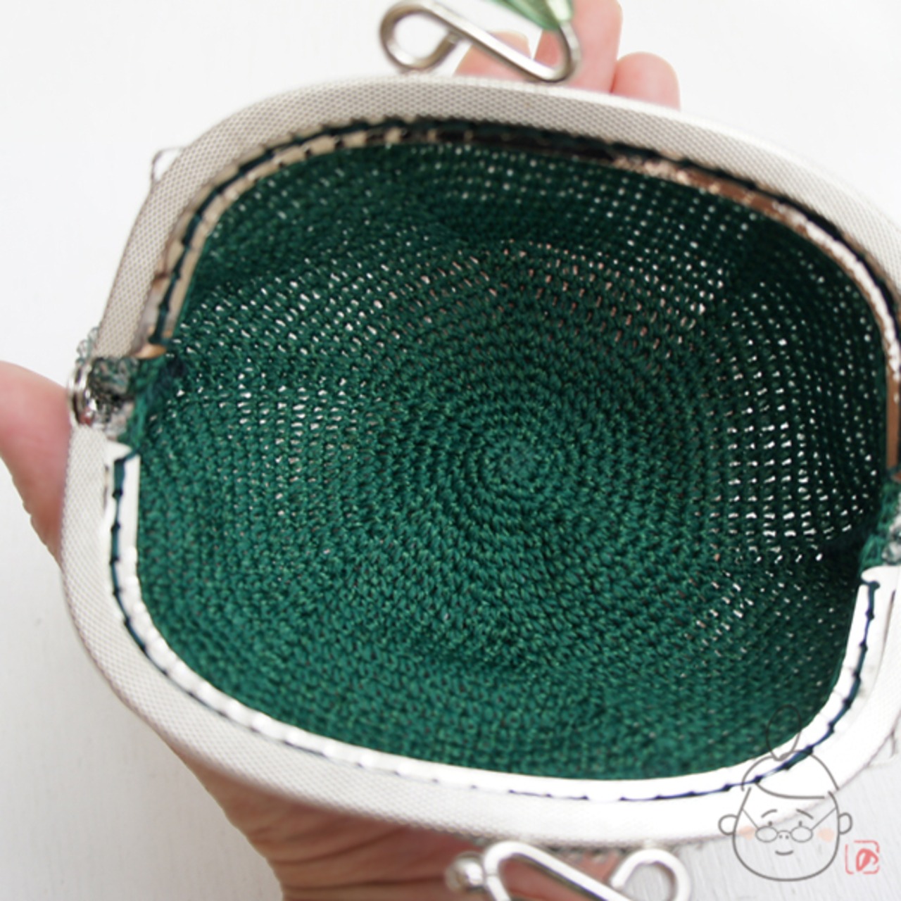 口金 : 柄入りシルバー×クリアグリーン、12.5cm、くし形
