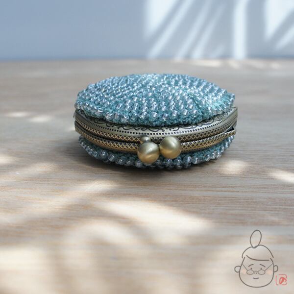 ばあば作☆☆ビーズのまぁるいminiがま口(opal・1132)