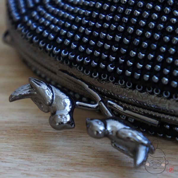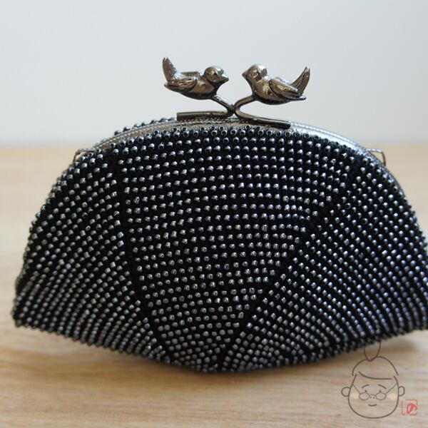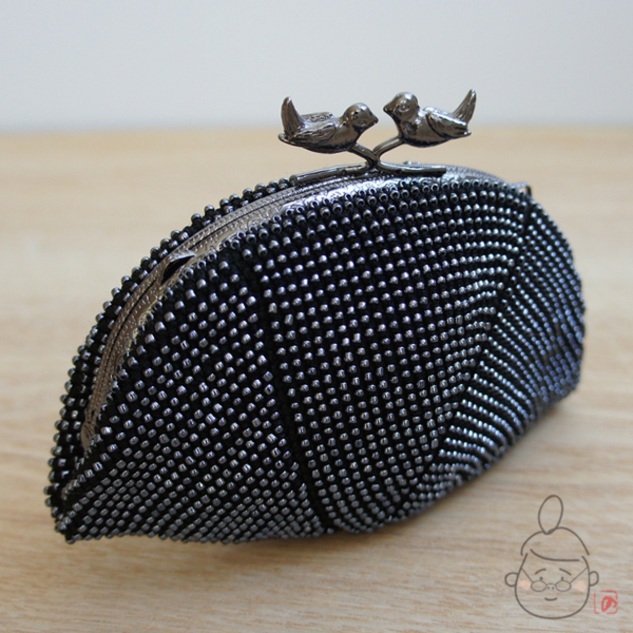 口金 : メタルブラック×小鳥のつまみ、12.5cm、くし型