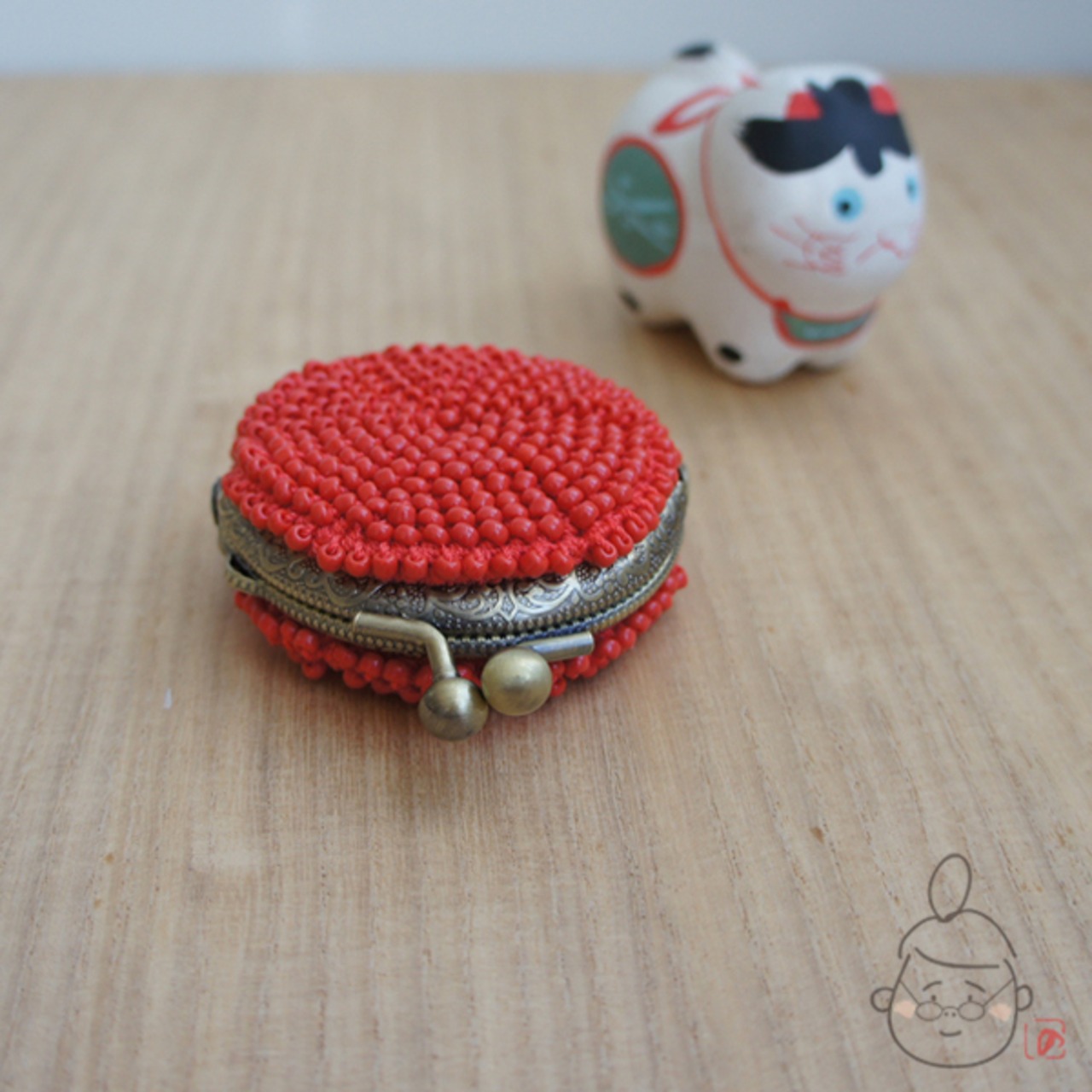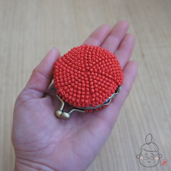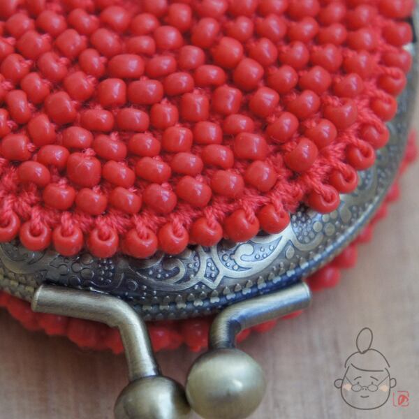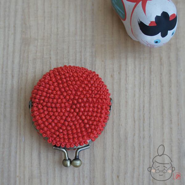 ばあば作☆☆ビーズのまぁるいminiがま口(林檎・999)