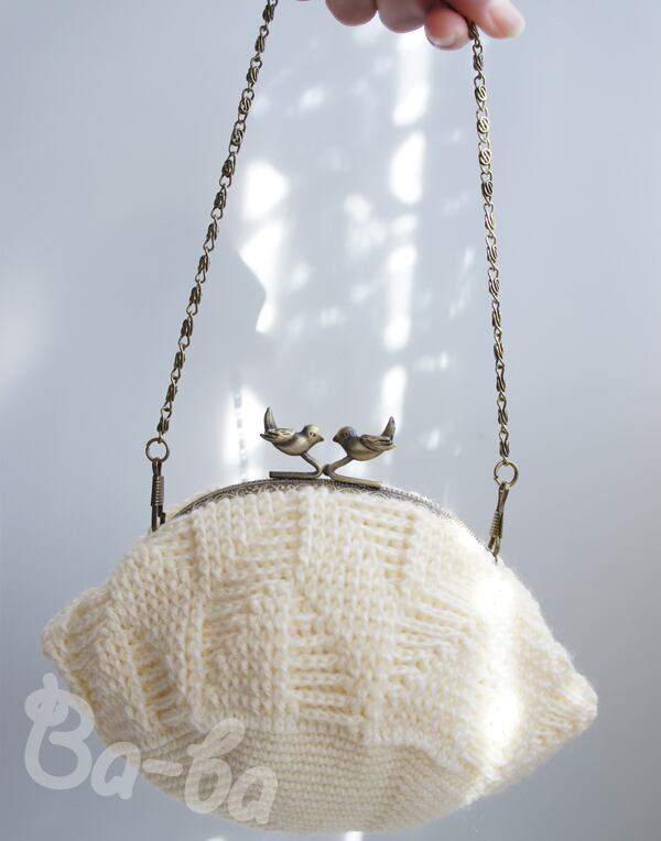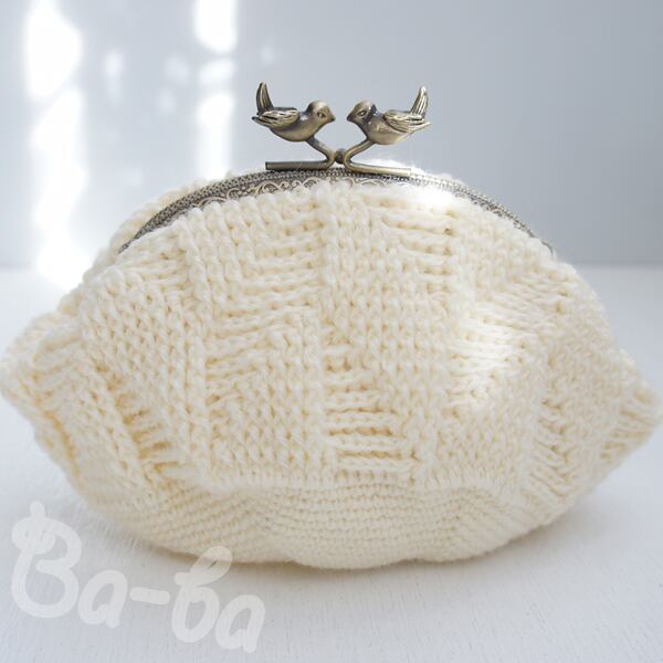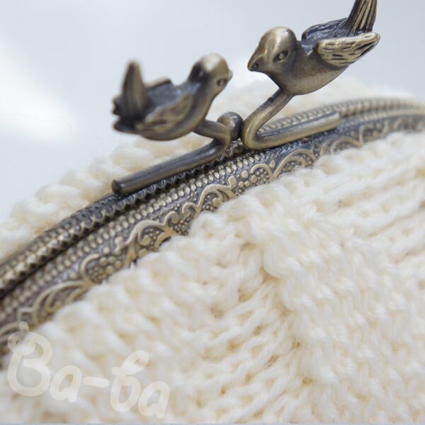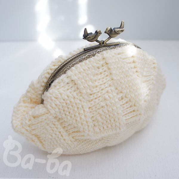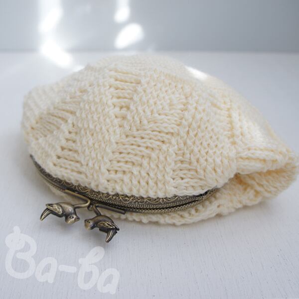 ふんわりと暖かい毛糸を「矢絣」という模様編みで編み上げ、がま口に仕上げました。