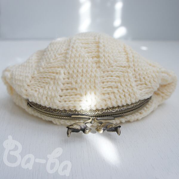ばあば作、さらに大きめ・模様編みのがま口(yagasuri・C1279)