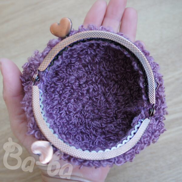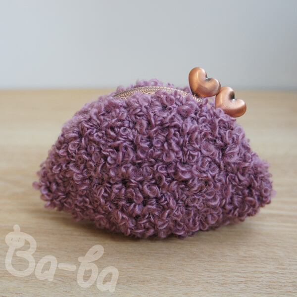 ばあば作ハートのふわふわがま口(モーブ・C1273)