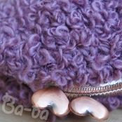 シックなモーブピンクのループヤーンをふんわりと編み上げ、ハートの口金と組み合わせました。