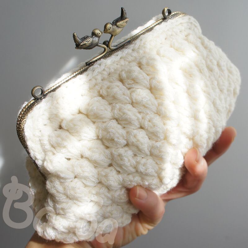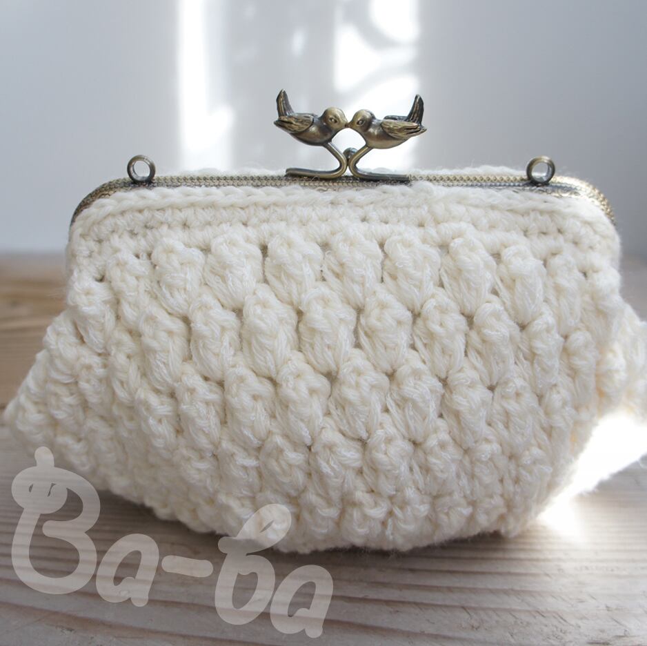 二羽の小鳥が口金の真ん中にとまっているような口金を、