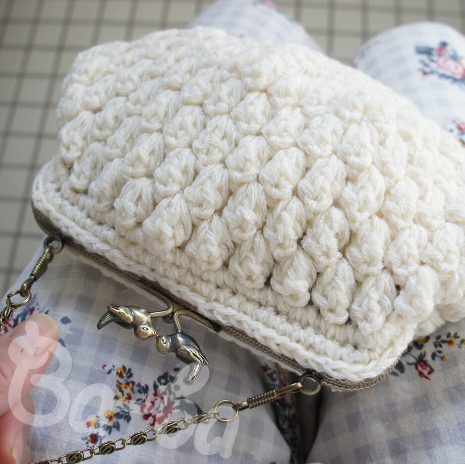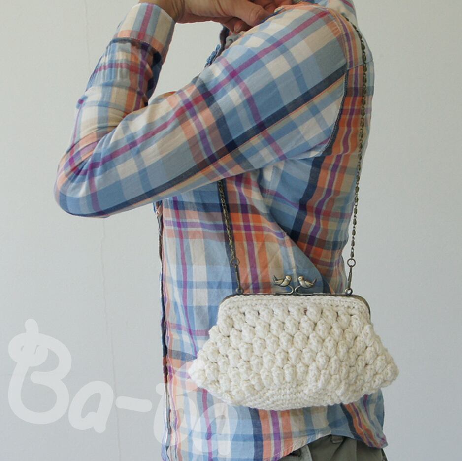 ボリュームたっぷりのパプコーン編みと組み合わせました。