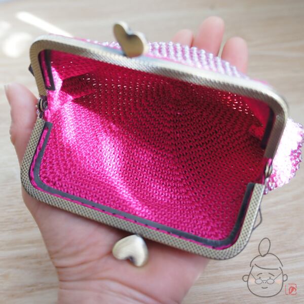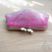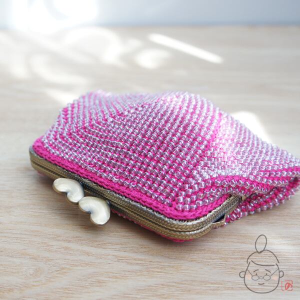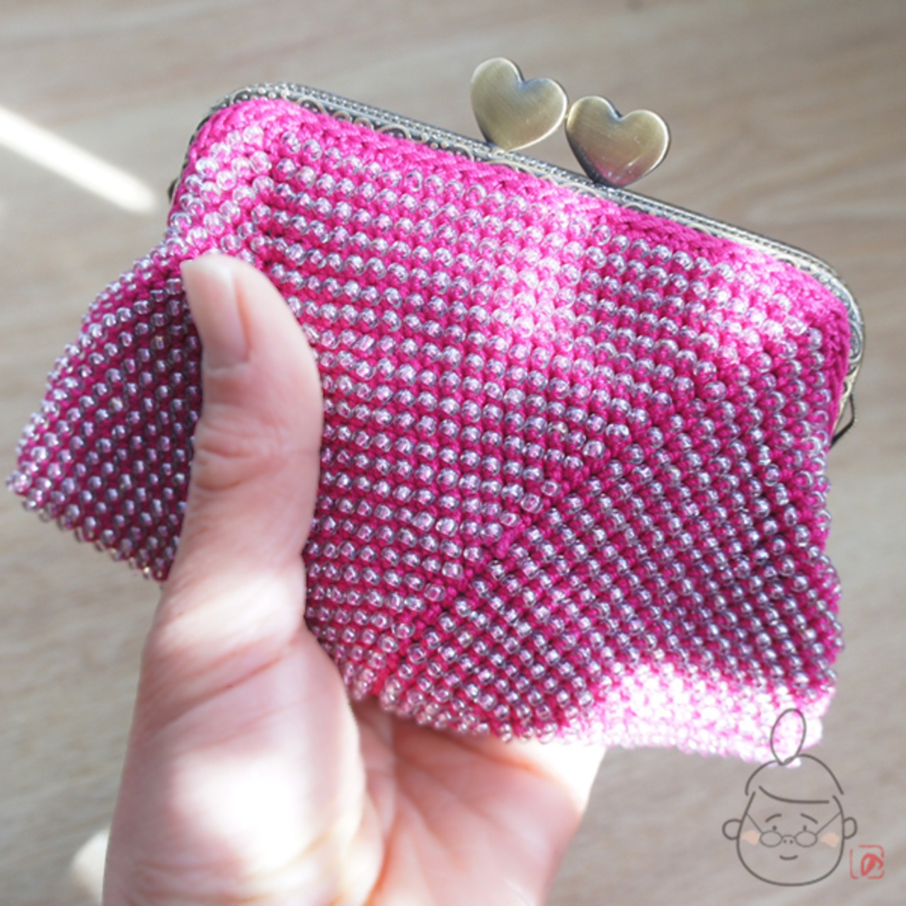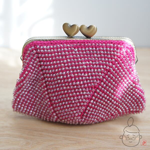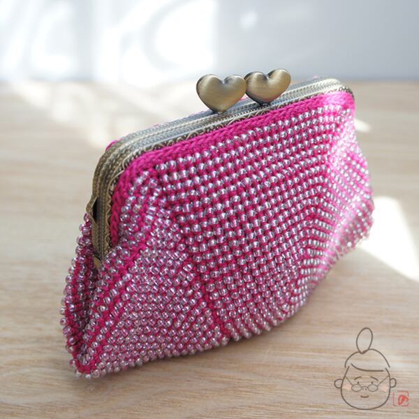 ばあば作☆☆大きめ☆・ガラスビーズのスクエアがま口 (pinkheart・1024)