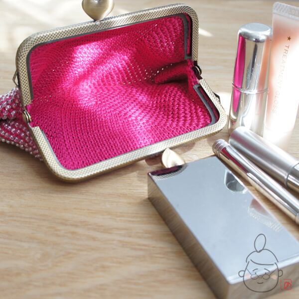 口金は10.5cm角形を使用し収納力バツグン、深さ充分で四角い小物の収納ラクラクです♪