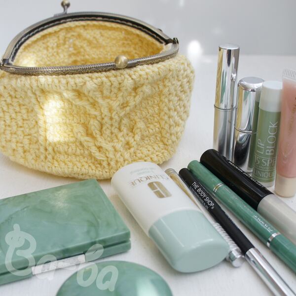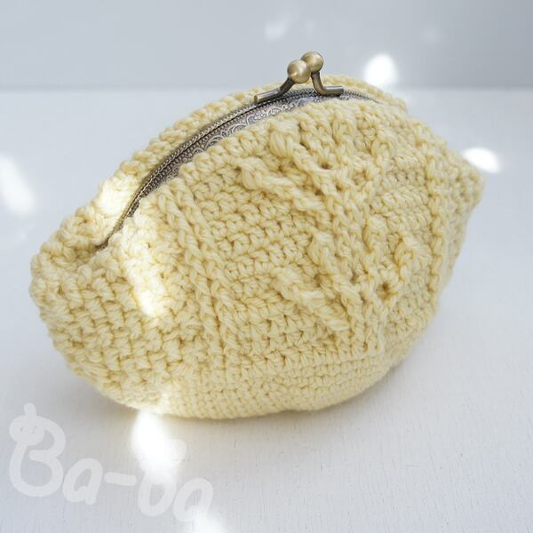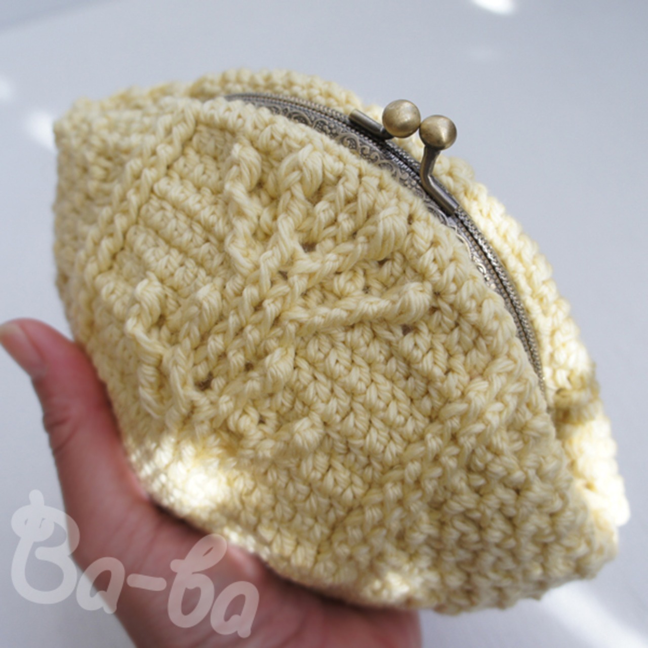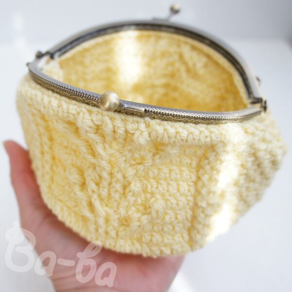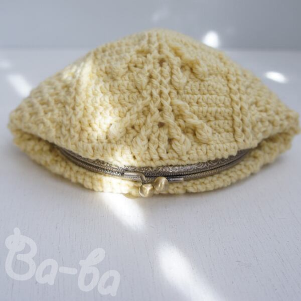 ばあば作、さらに大きめ・模様編みのがま口(ミモザ・C1280)