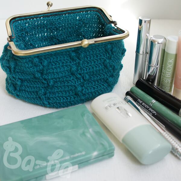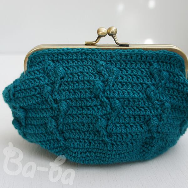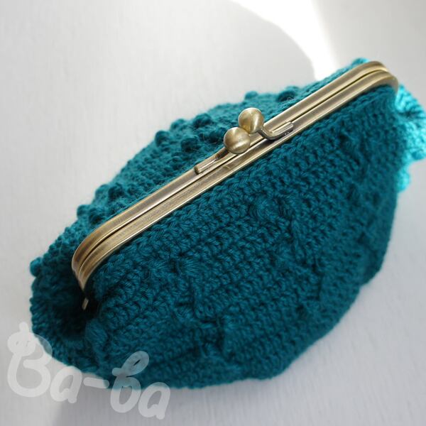ふんわりと暖かい毛糸を模様編みで編み上げ、がま口に仕上げました。