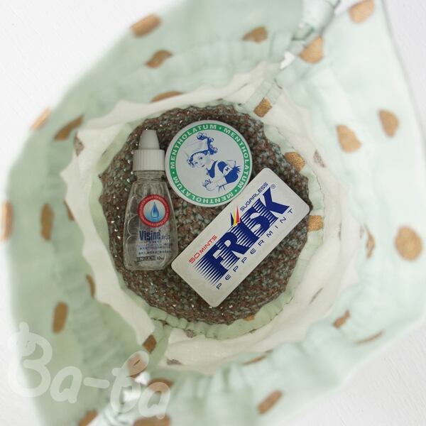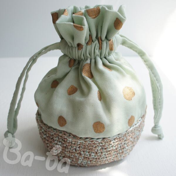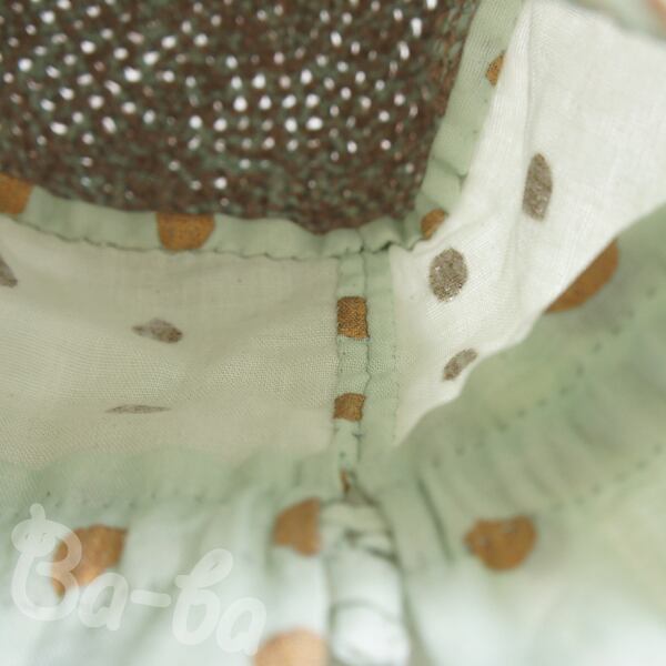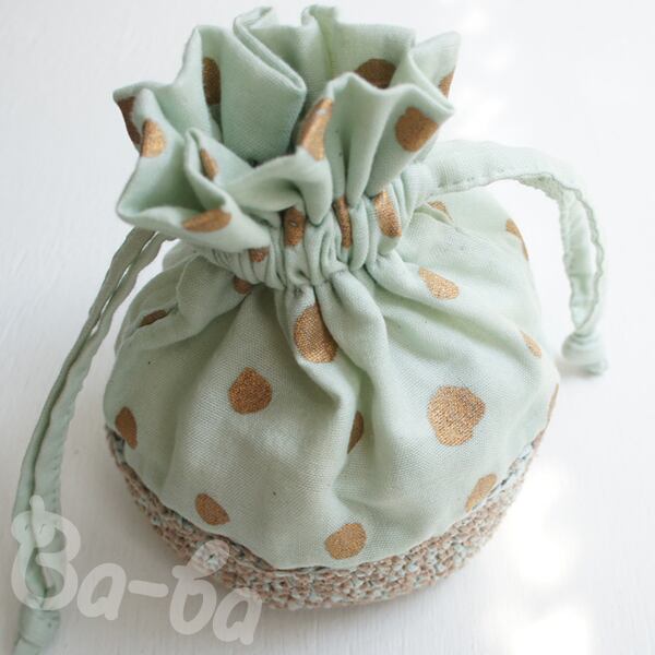 布 : コットンダブルガーゼ(ミントグリーン地に金色水玉)