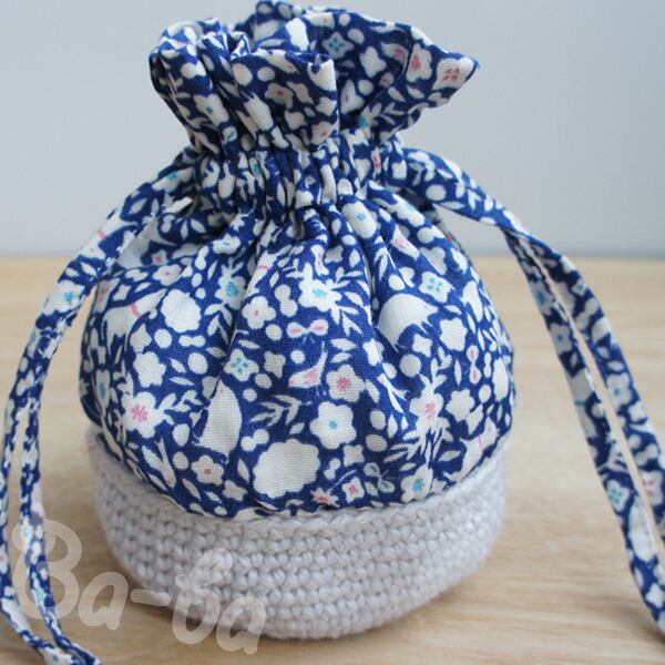 まるころ巾着ポーチ(しろいはな・K18)