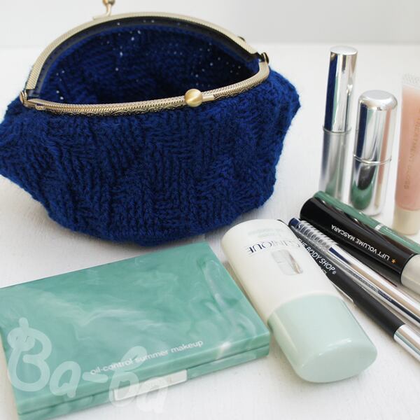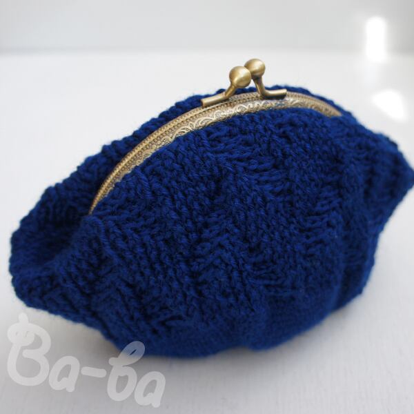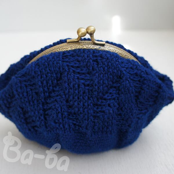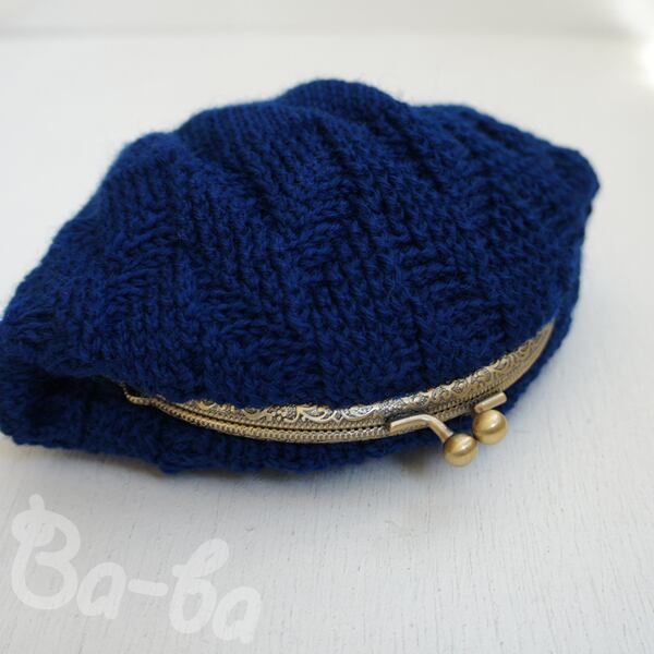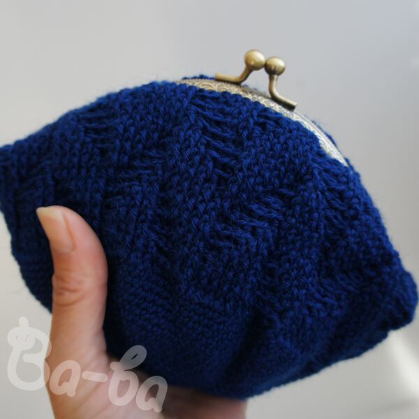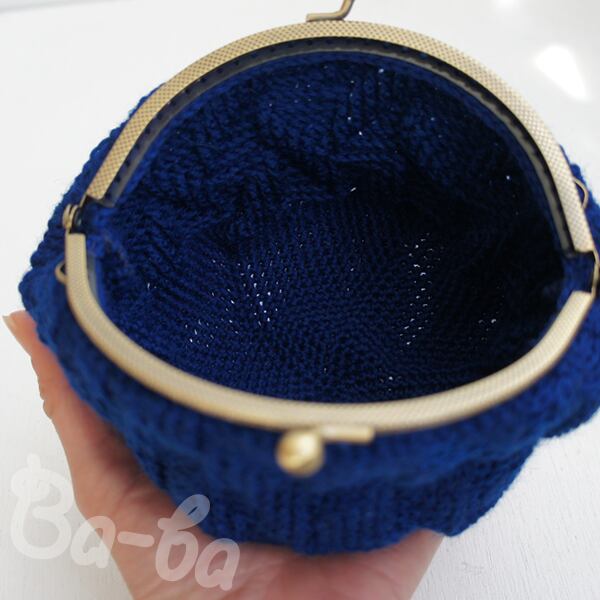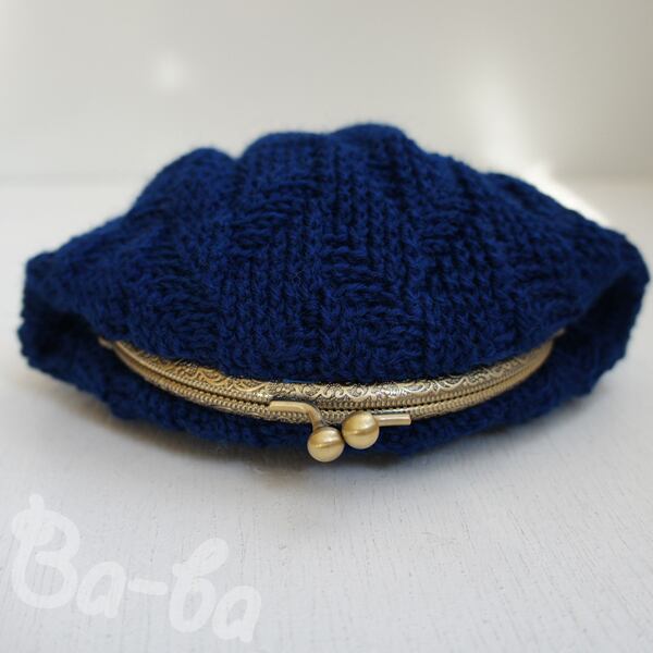 ばあば作、さらに大きめ・模様編みのがま口(inkblue・C1293)