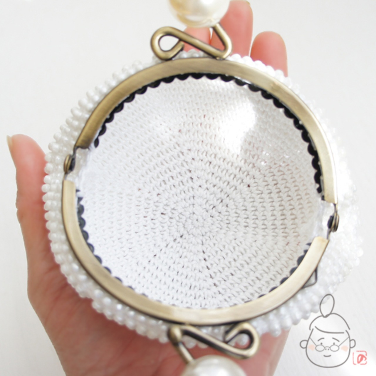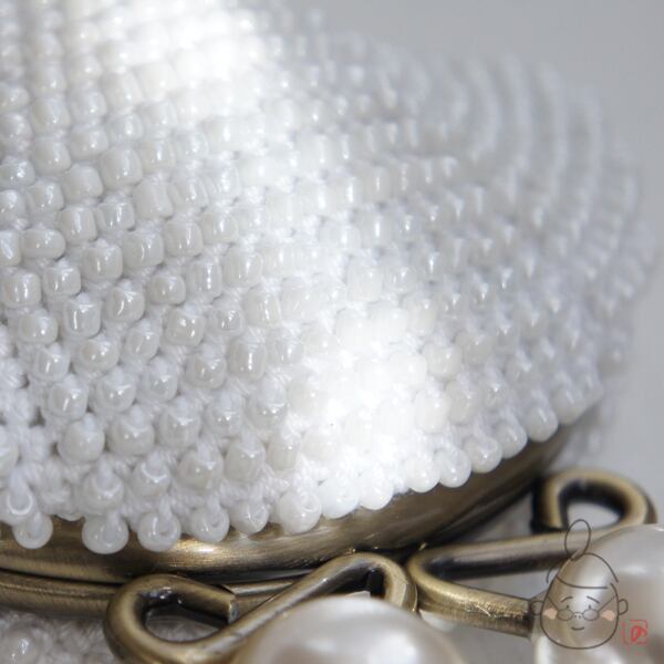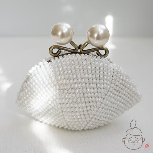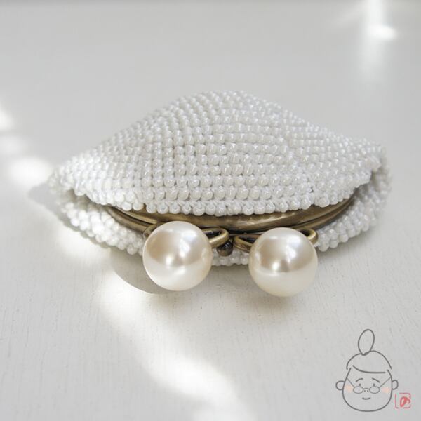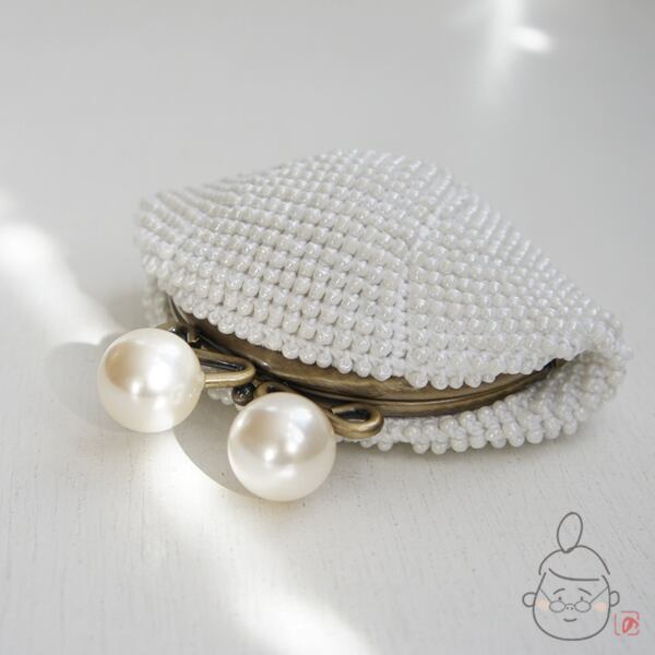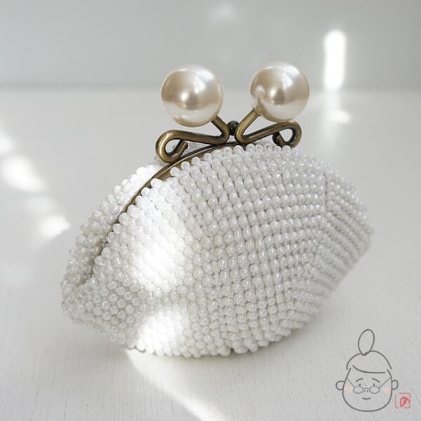 ばあば作☆☆総ガラスビーズの「大きめパール」がま口(pearlwhite・1145)