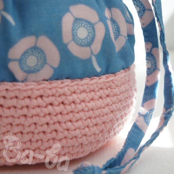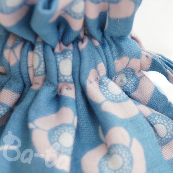 布 : ダブルガーゼ(青地にピンクのアネモネ柄)