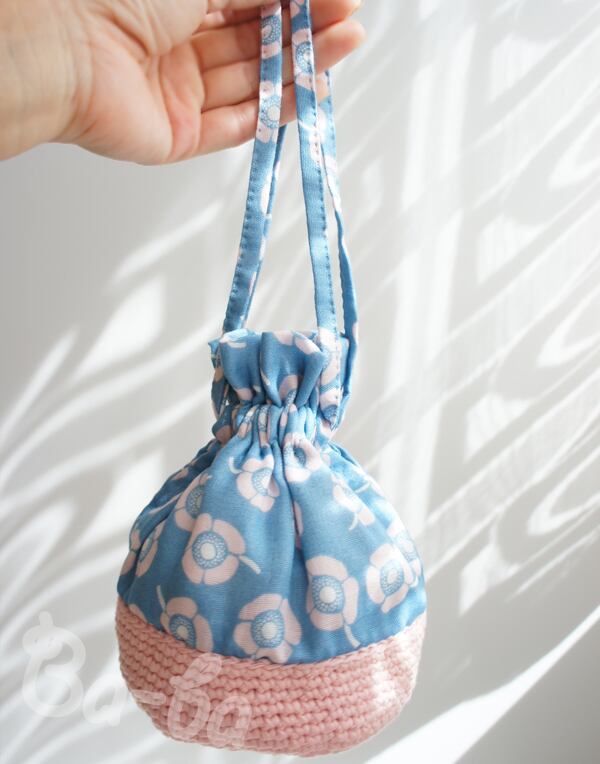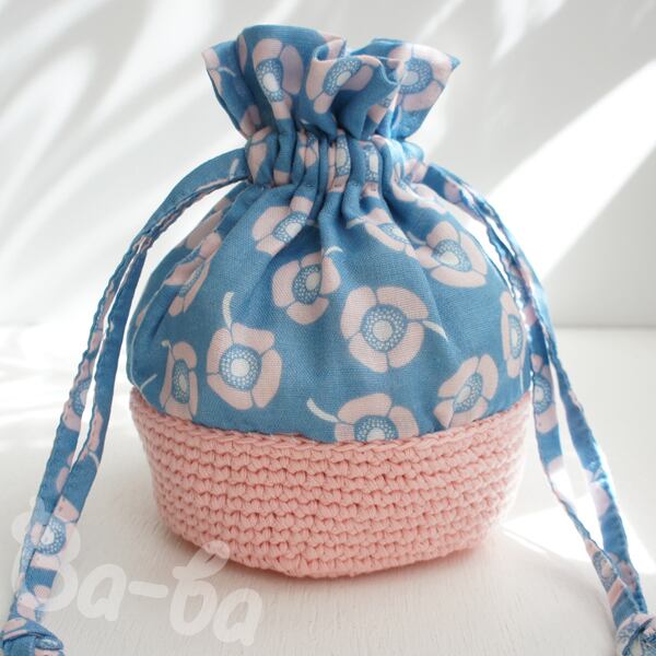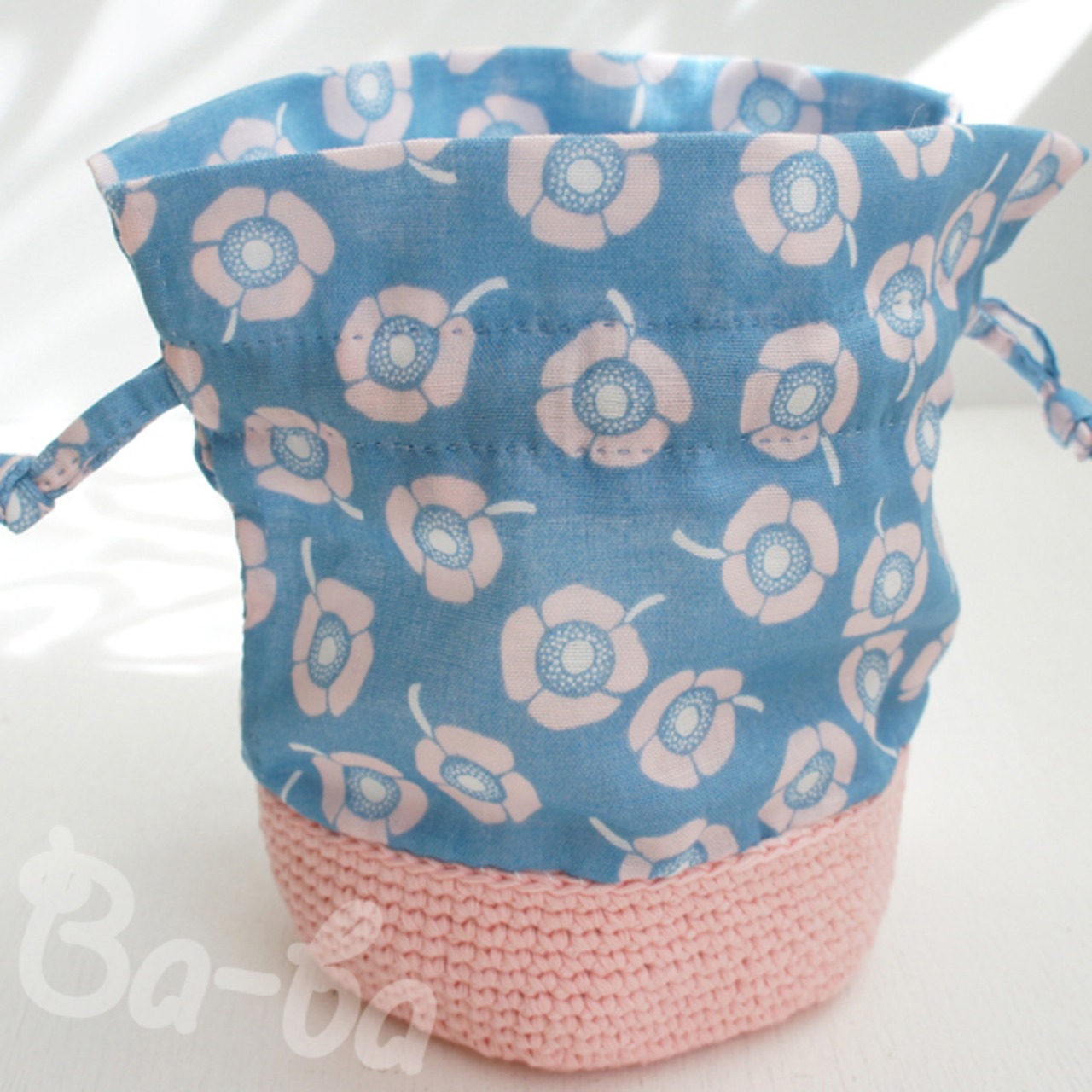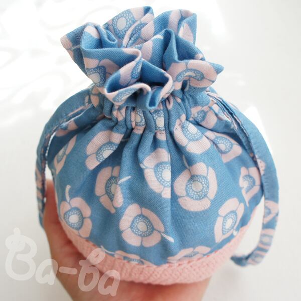 まるころ巾着ポーチ(K12・ピンクのアネモネ)