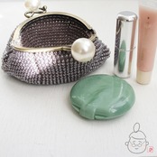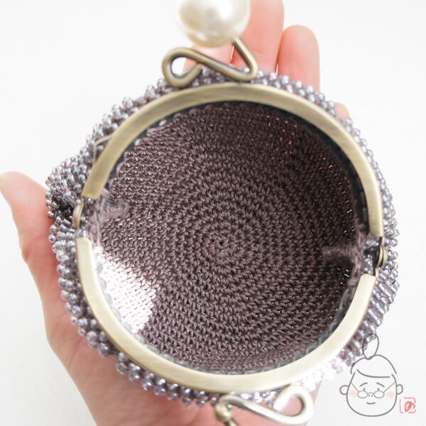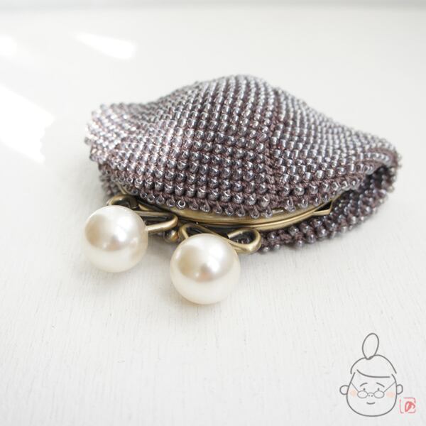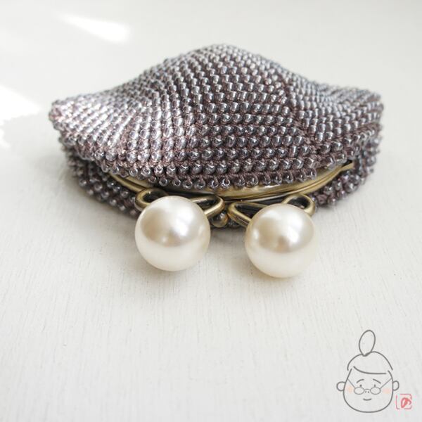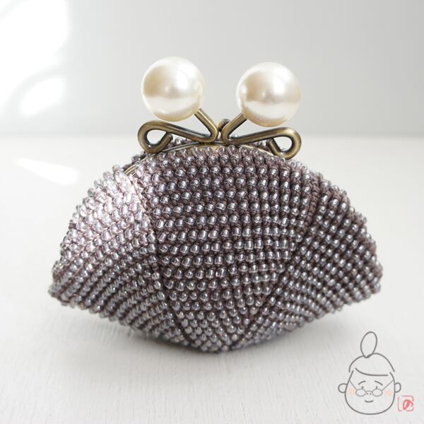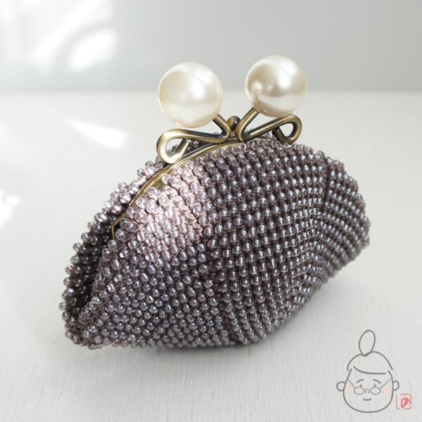 ばあば作☆☆総ガラスビーズの「大きめパール」がま口(すずいろ・1153)