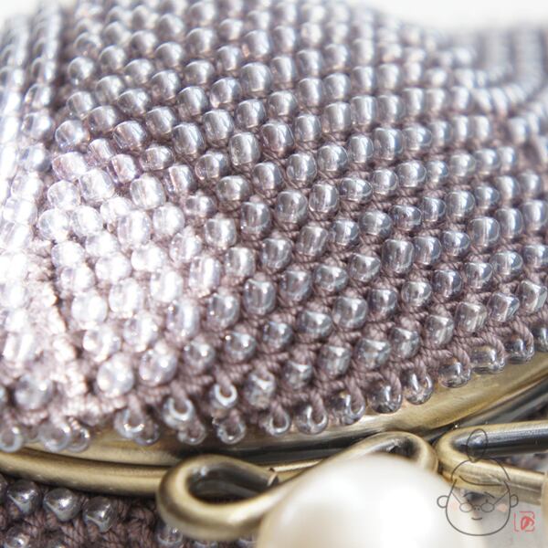 本体はガラスビーズを全面に一粒づつ編み込みました。