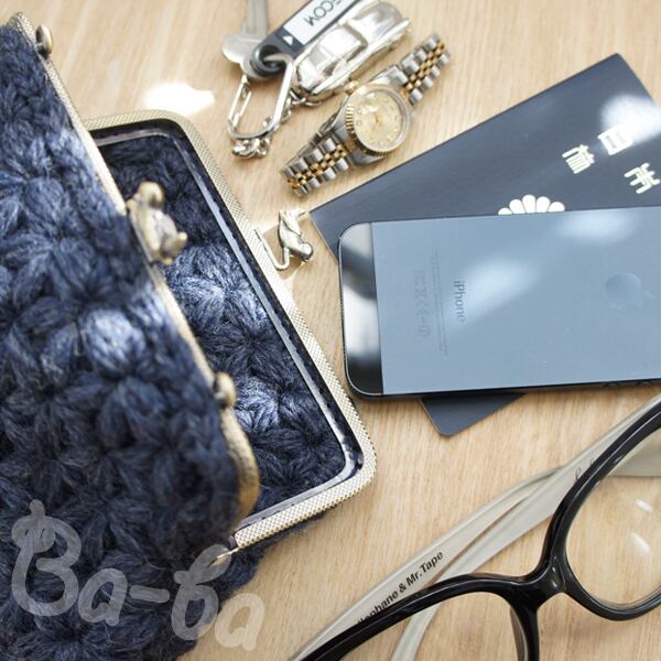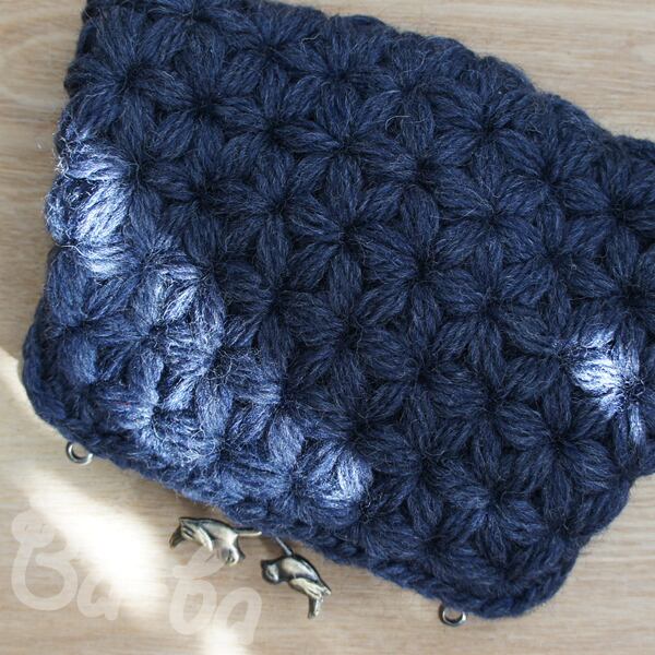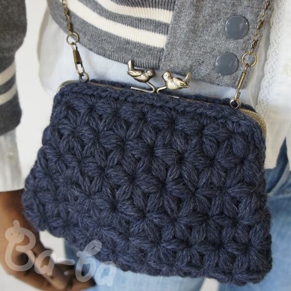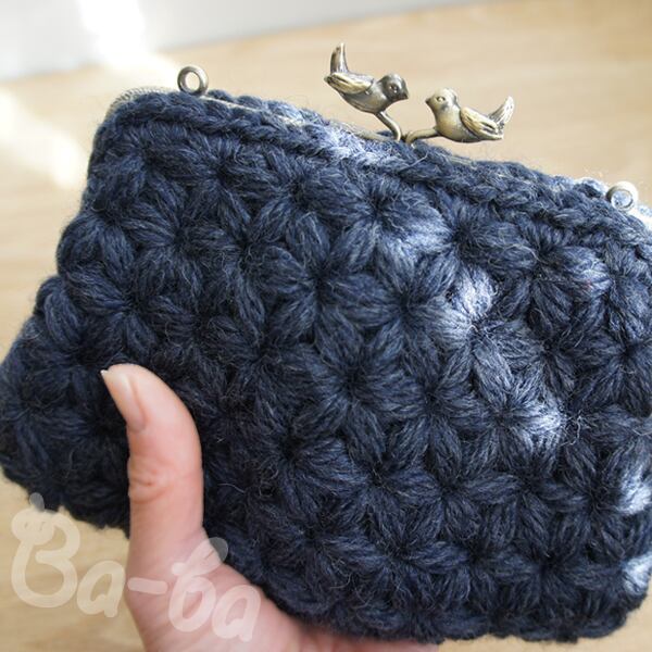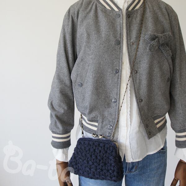 ばあば作・小鳥のリフ編みプチバッグ(grayishblue・C1303)