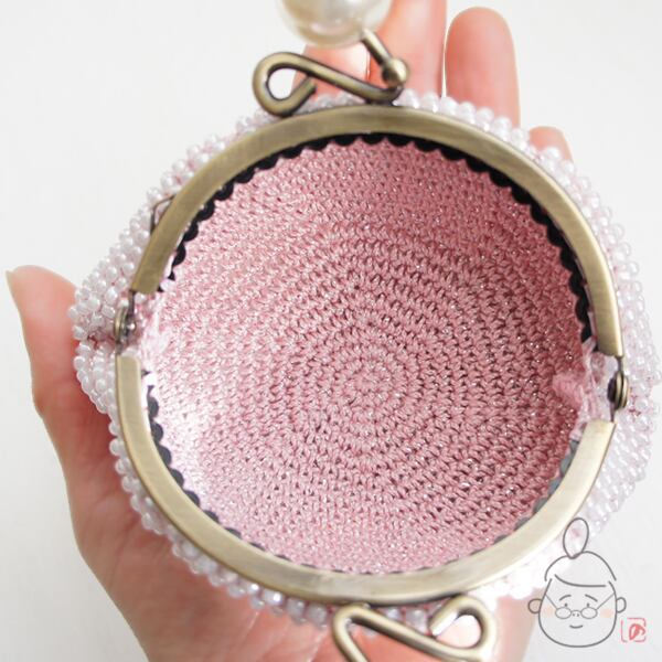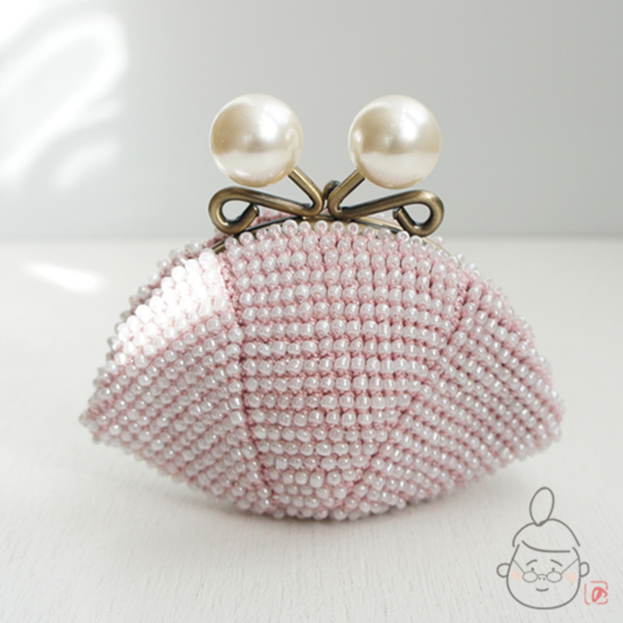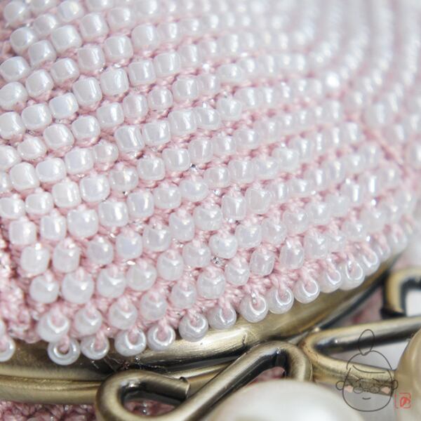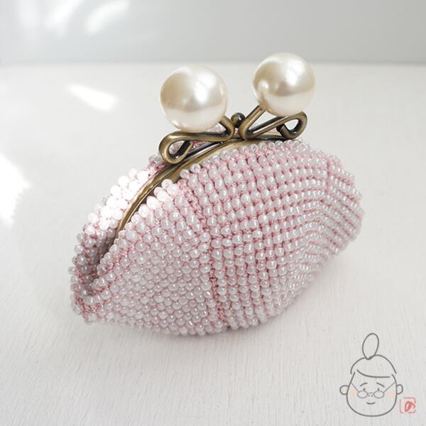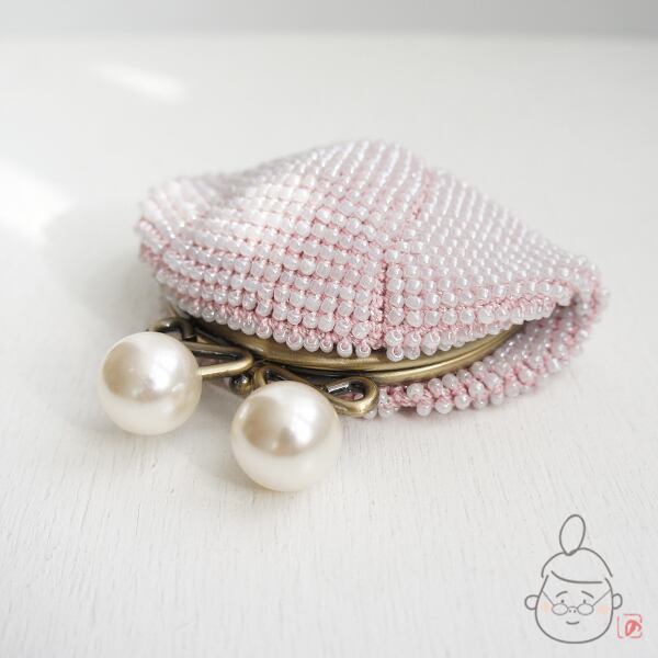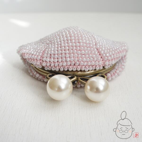 ばあば作☆☆総ガラスビーズの「大きめパール」がま口(seashellpink・1151)