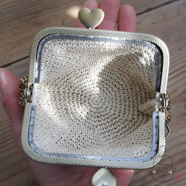 口金 : アンティークゴールド柄入り、ハートつまみ、8.5cm、角