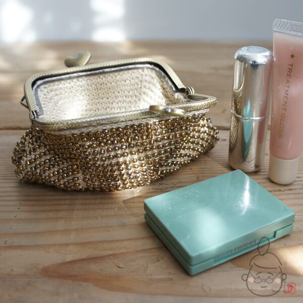 ばあば作☆☆総ガラスビーズのスクエアがま口(maturegold・1161)