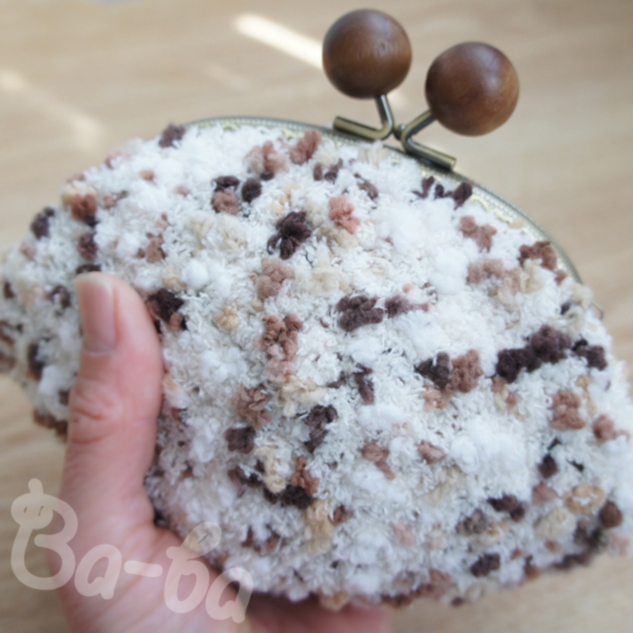 糸 : 混紡毛糸(ブラウン系混色モールヤーン)