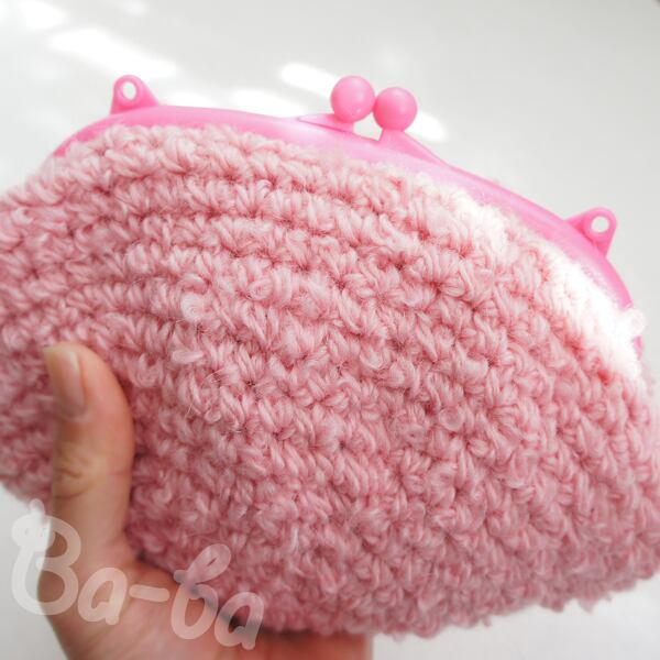 軽量縫いつけプラ口金を使用し、本体としっかり固定しています。
