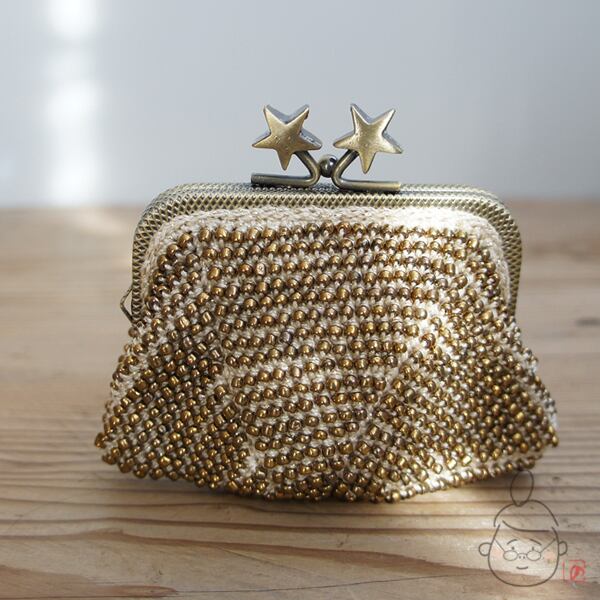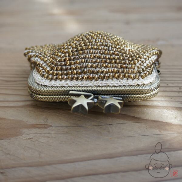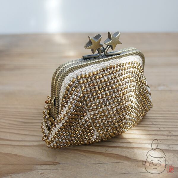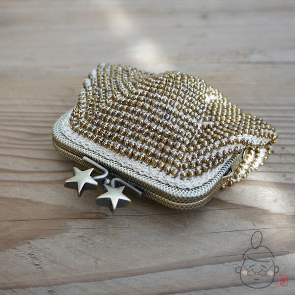 ばあば作★総ガラスビーズのスクエアがま口 (golden・1141)