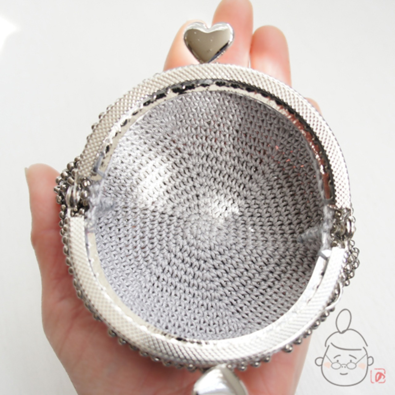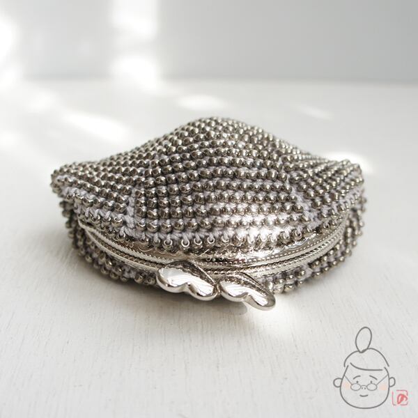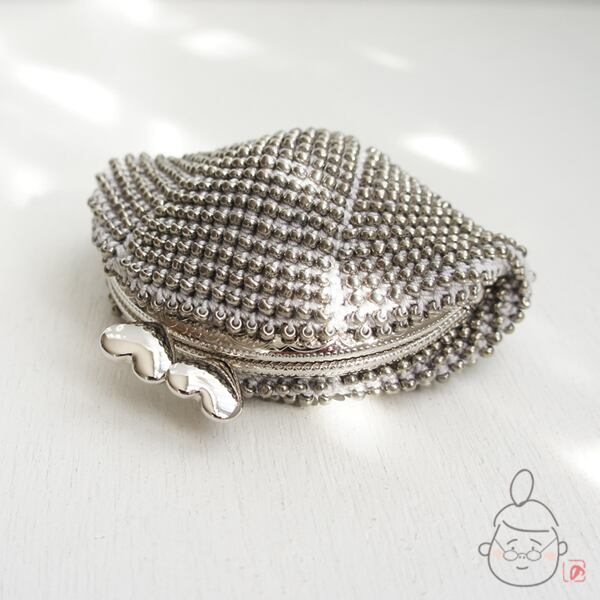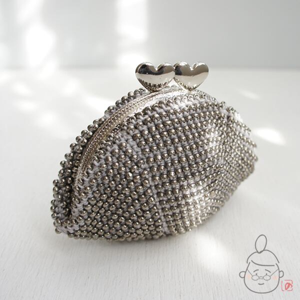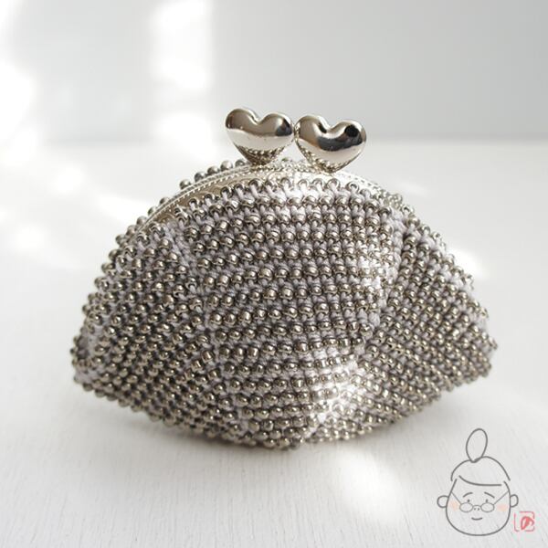ばあば作♥総ガラスビーズのハートがま口 (silber・1162)
