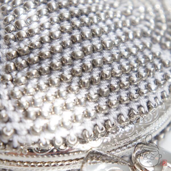 銀色のガラスビーズを全面に一粒づつ編み込みました。
