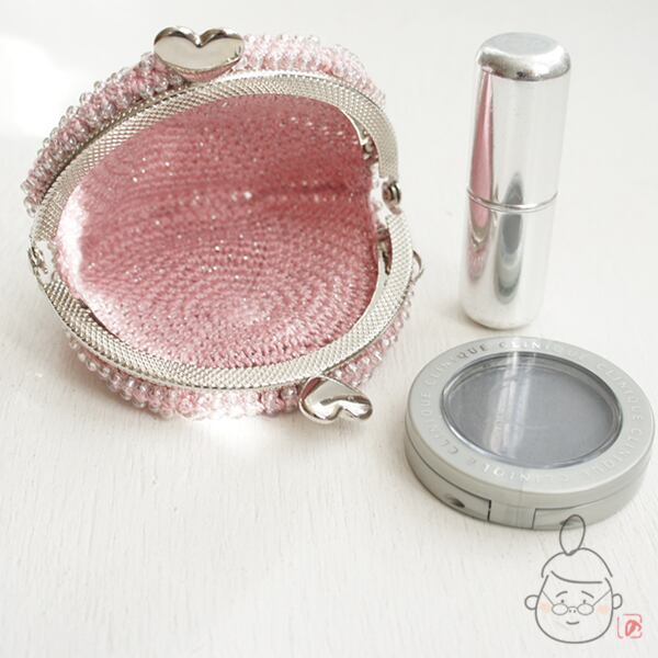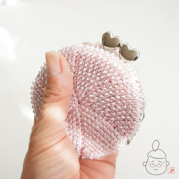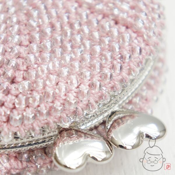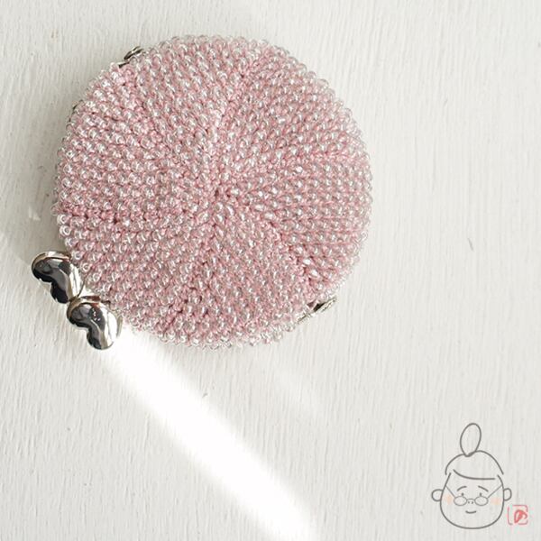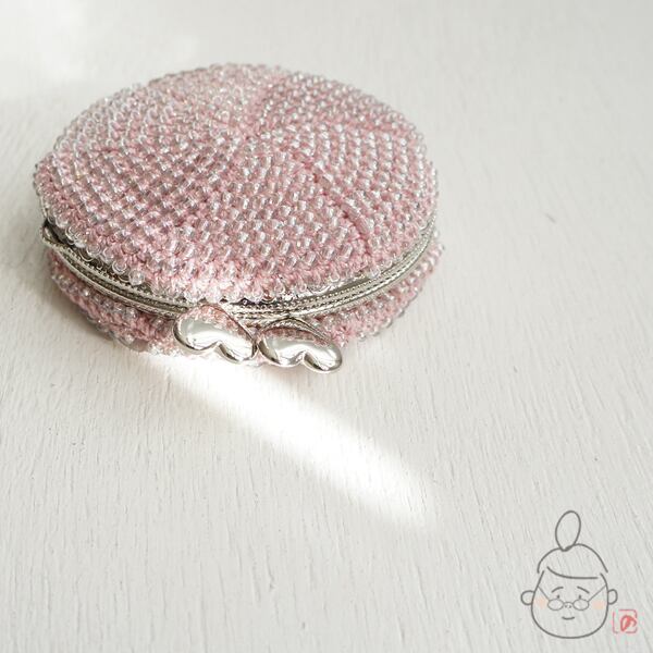 ばあば作♥ガラスビーズのまんまるがま口(ドラジェピンク・1156)