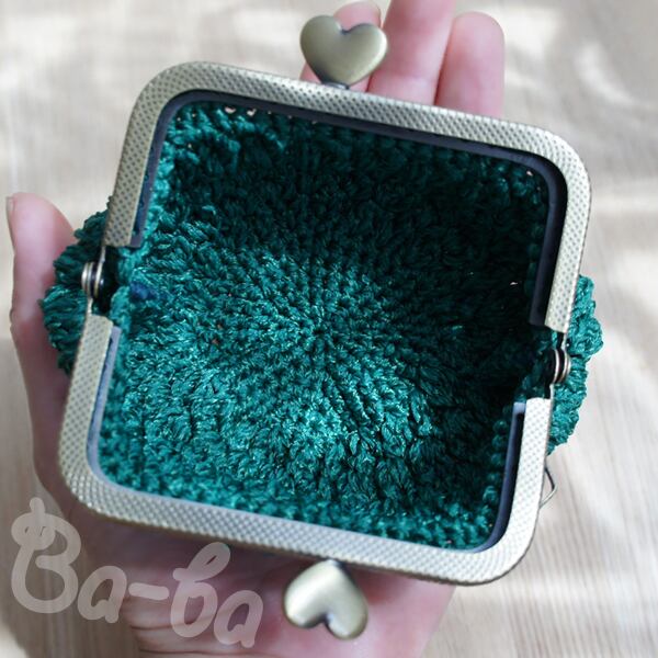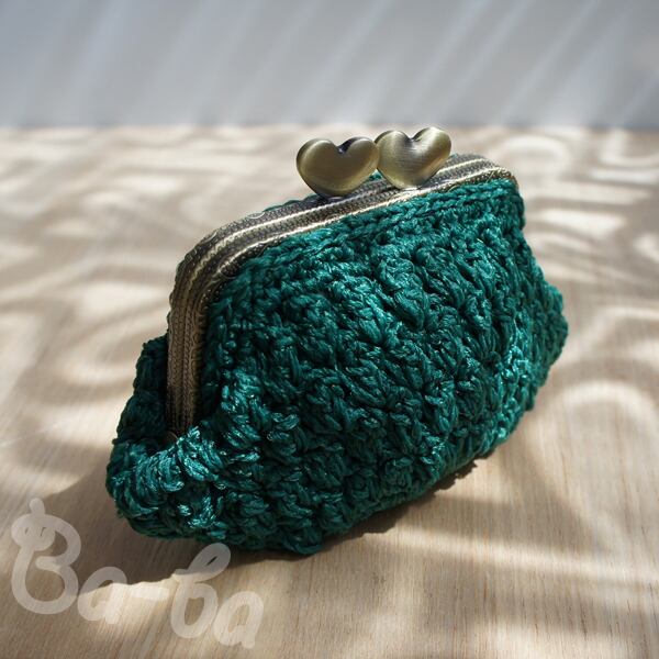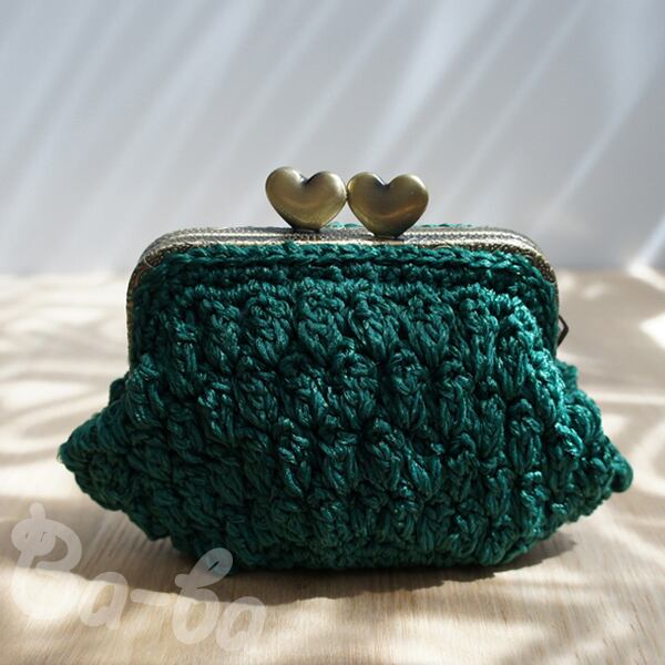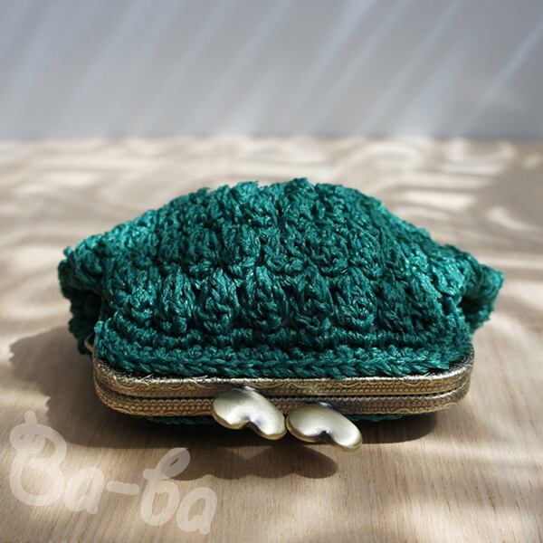 ばあば作、パプコーン編みのがま口(サマーグリーン・C984)