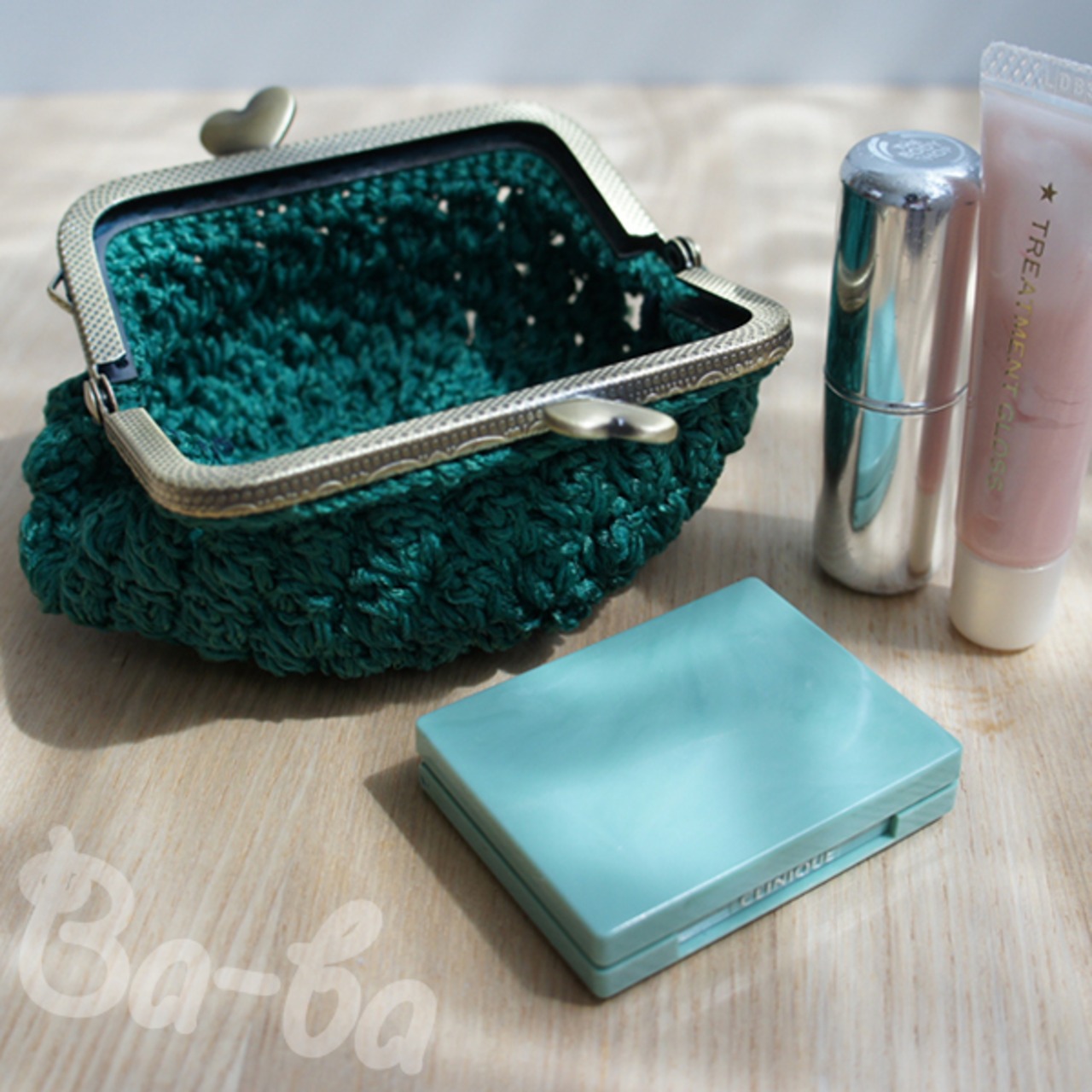 ハートつまみの口金が、さりげなくアクセントになっています。