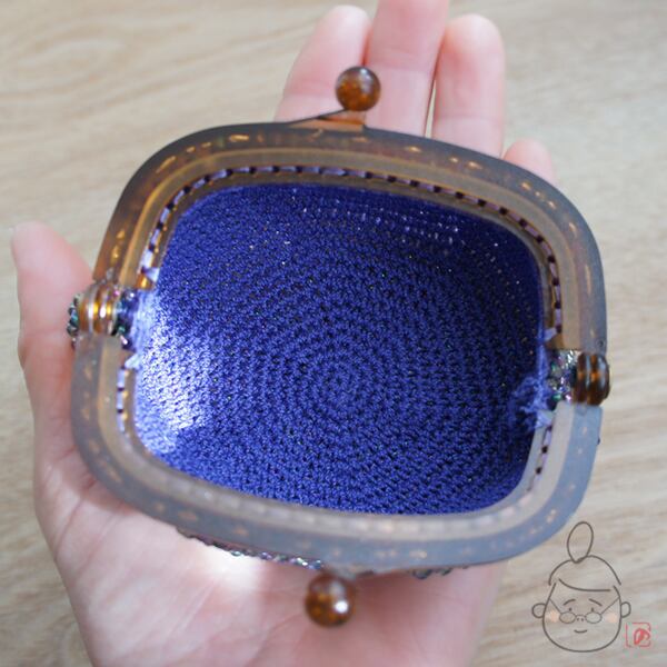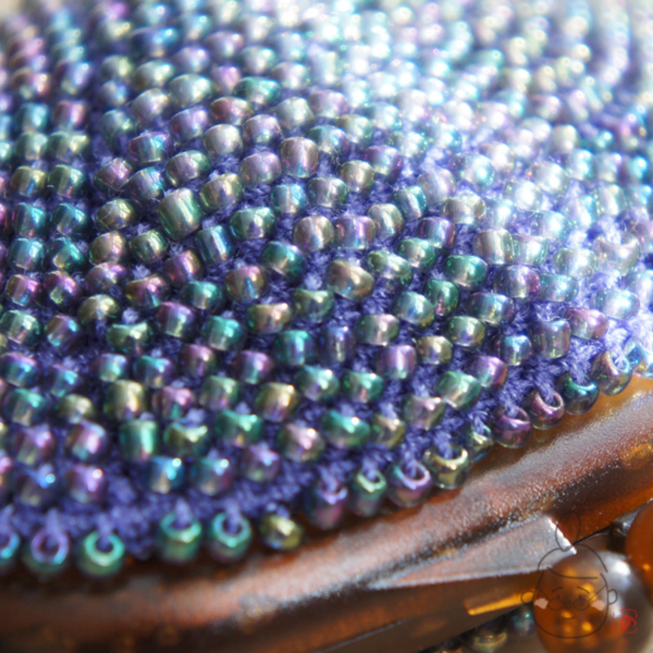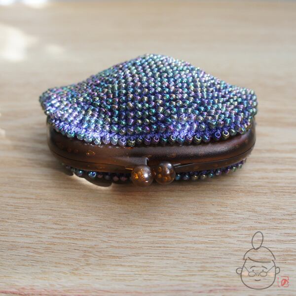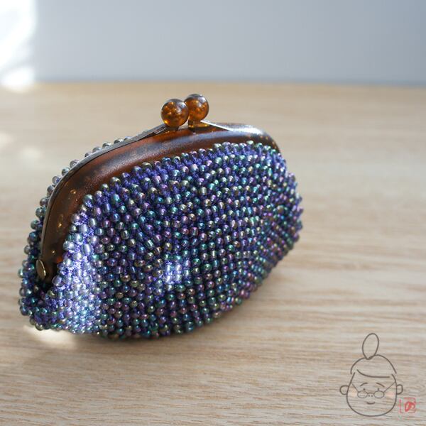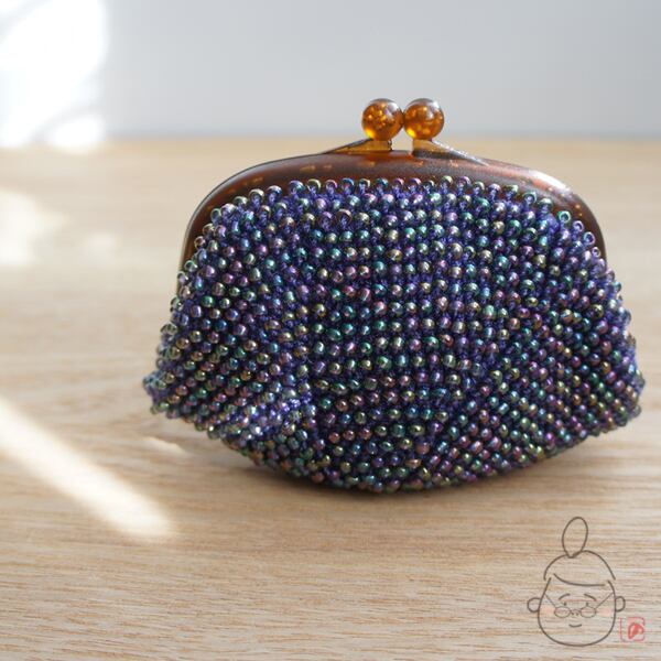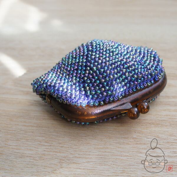 3mmのガラスビーズをひとつぶづつ編み込んだがま口です。