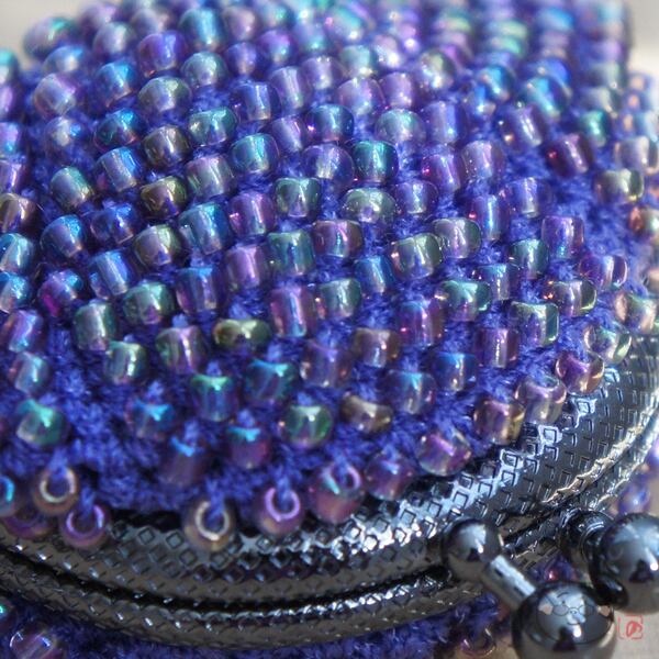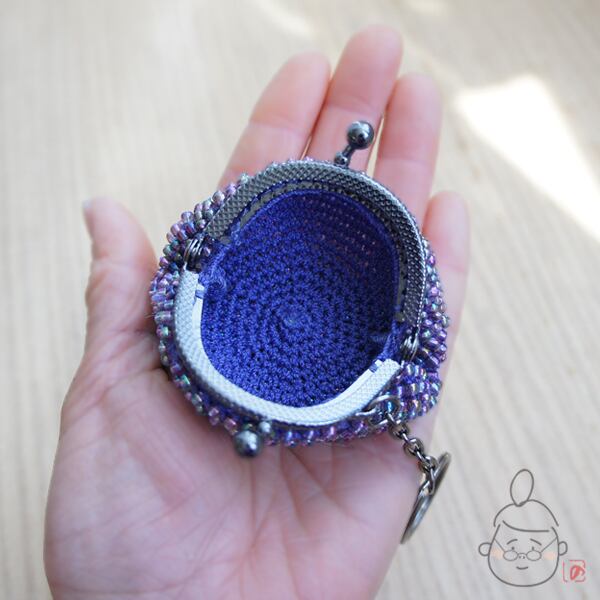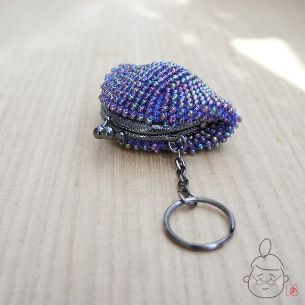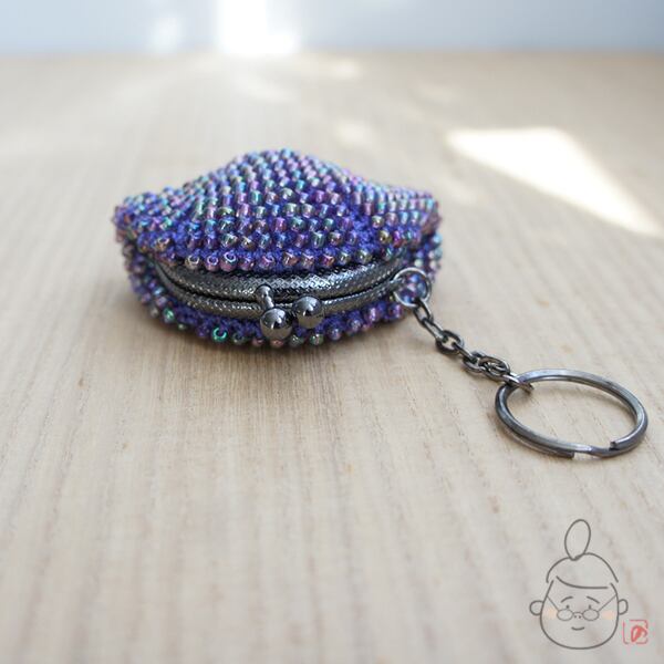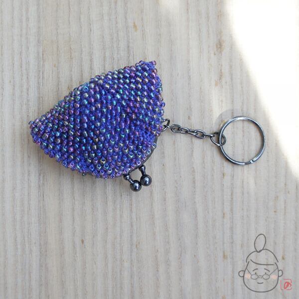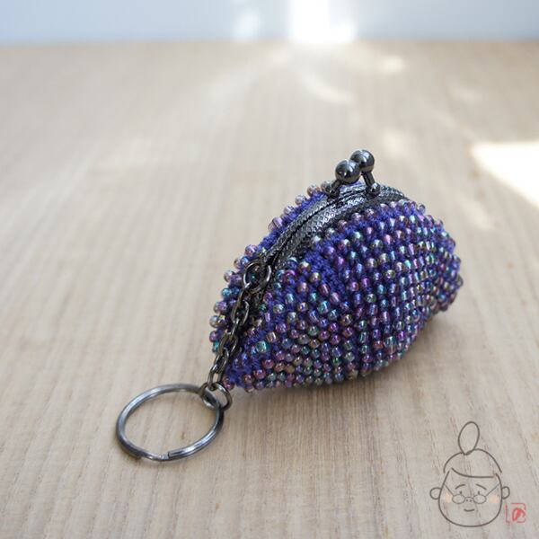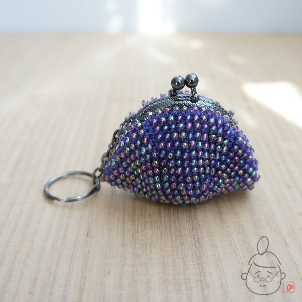キラキラのガラスビーズをひとつぶづつ編み込んだがま口です。