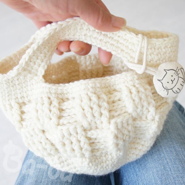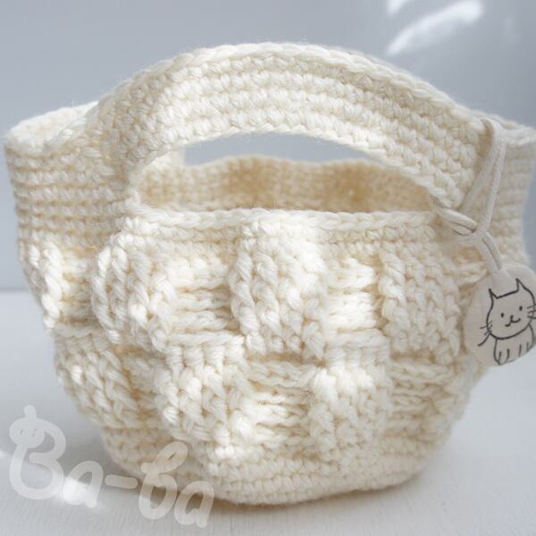 ばあばが編んだ、ちょっくらそこまでバッグ(格子柄・cream・CSB26)