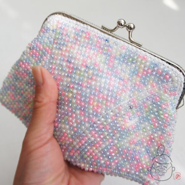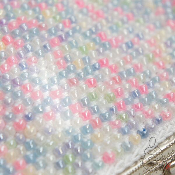 3mmのガラスビーズをひとつぶづつ、全面に編み込みました。