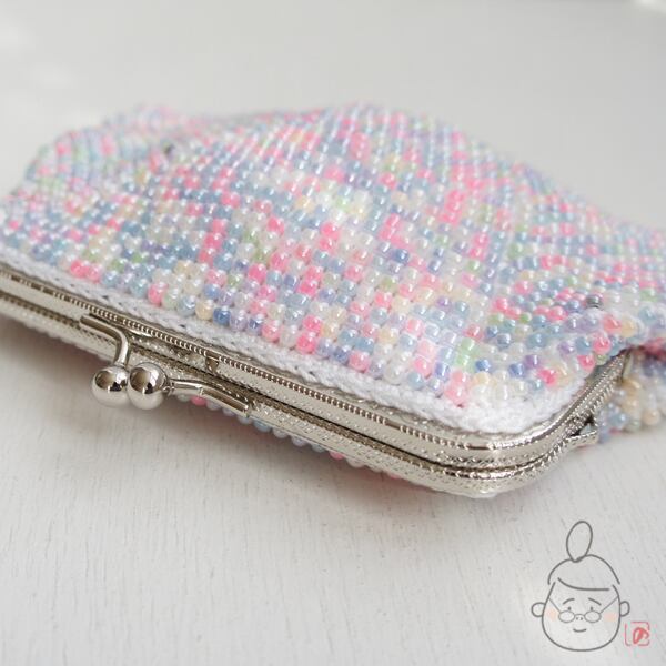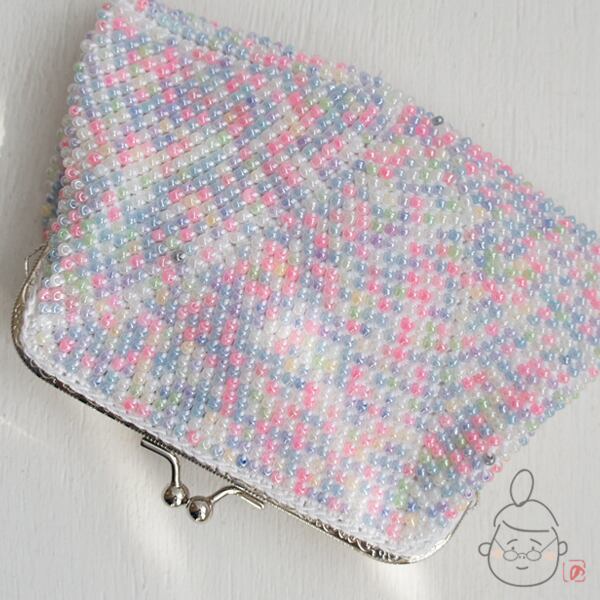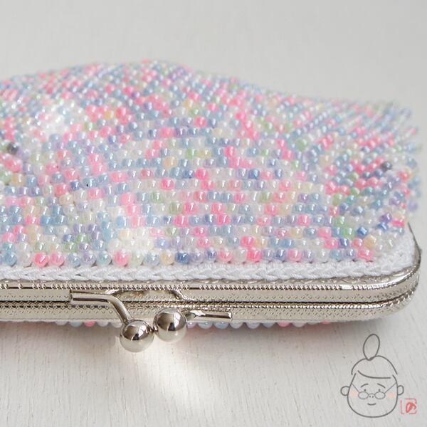 ばあば作☆☆さらに大きめ☆ガラスビーズのスクエアがま口 (candypink・1148)