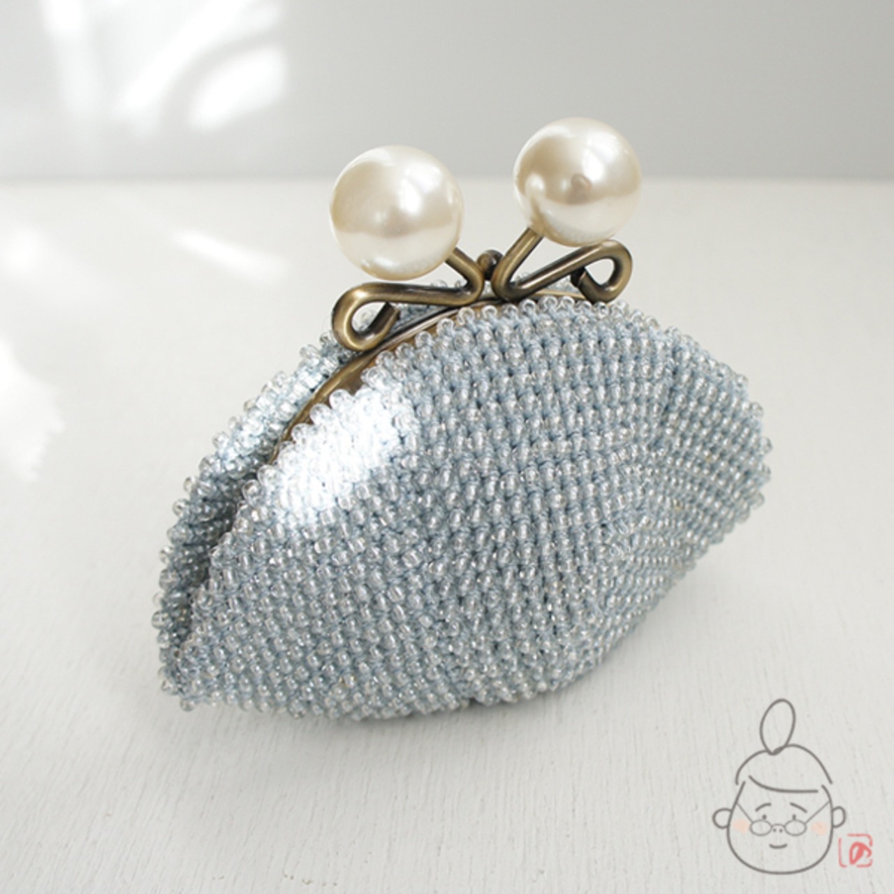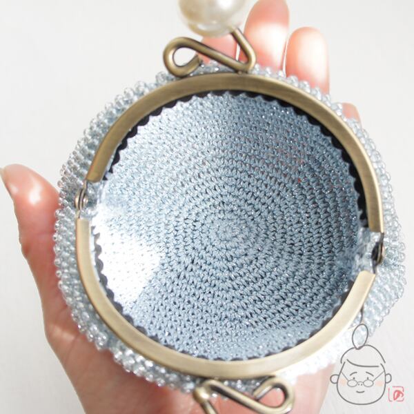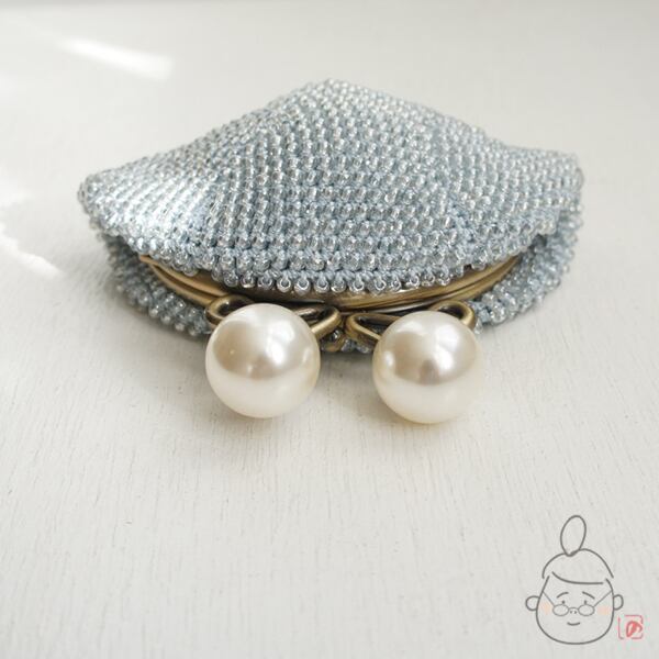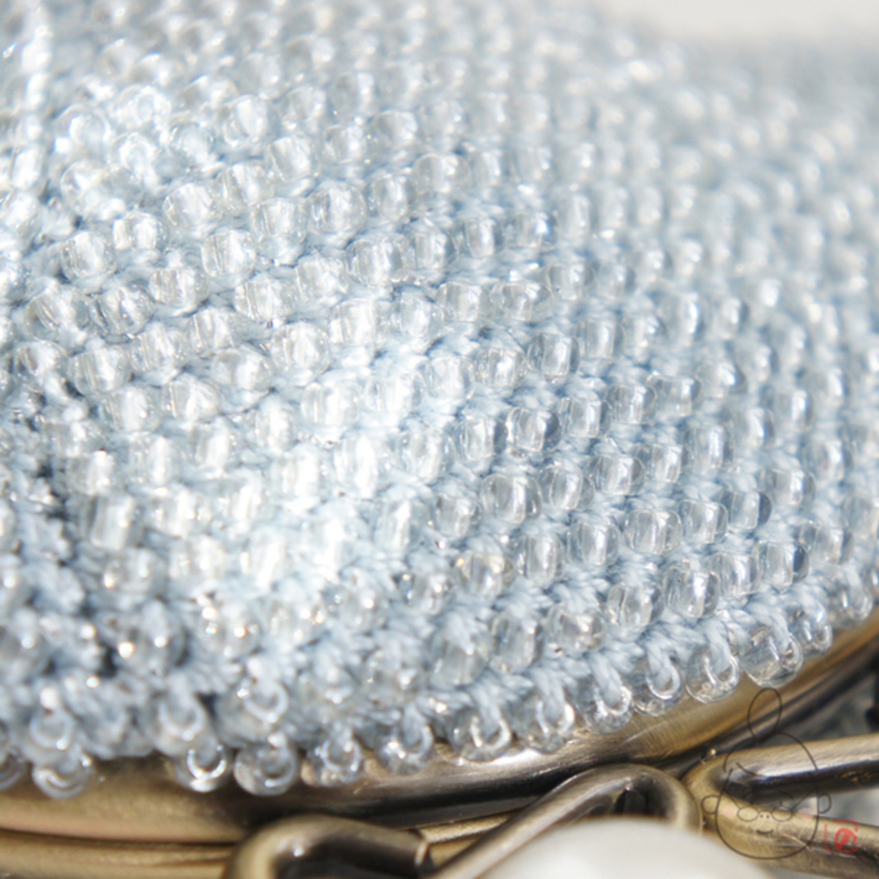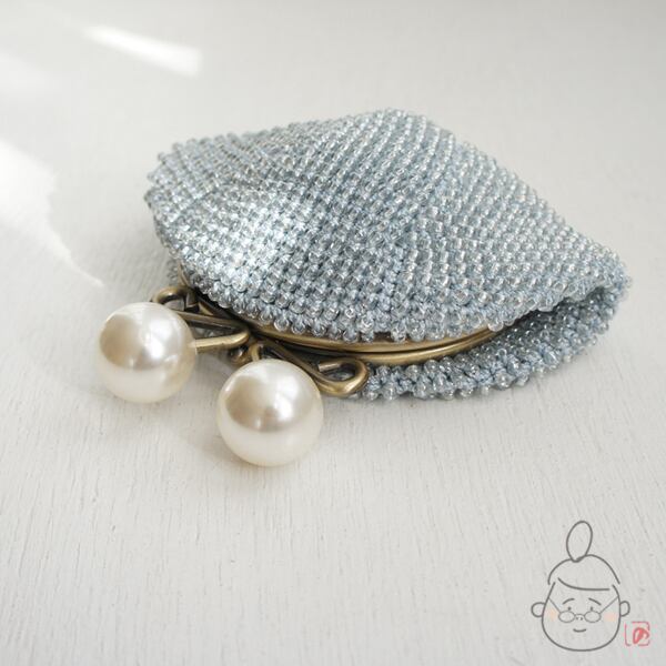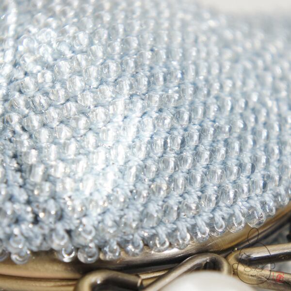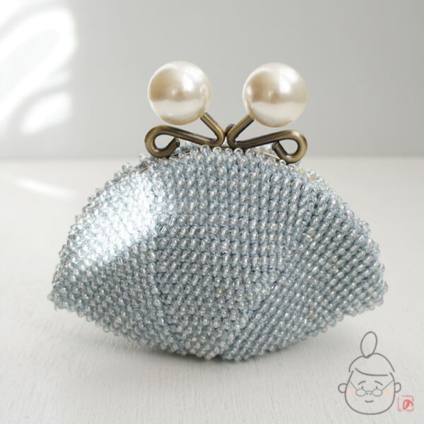 ばあば作☆☆総ガラスビーズの「大きめパール」がま口(わすれなぐさ・1152)