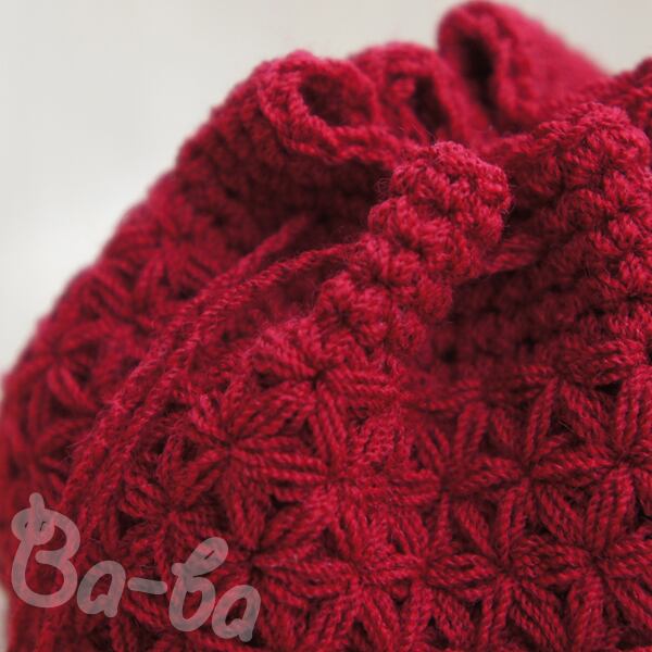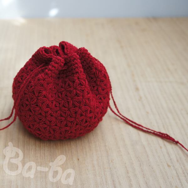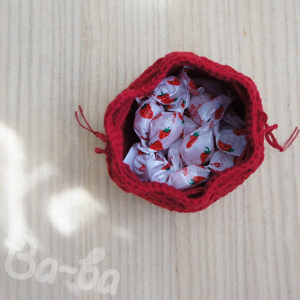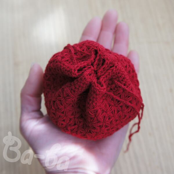 ばあば作、細かいリフ編みのちび巾着(あか・KPR5)