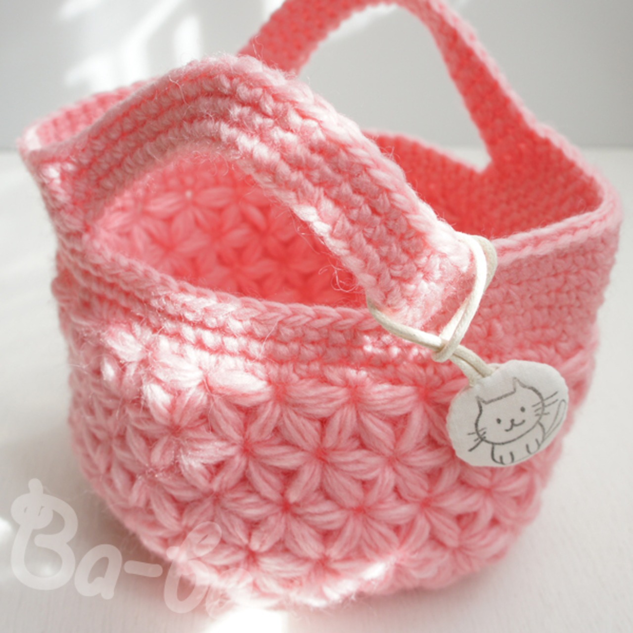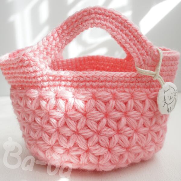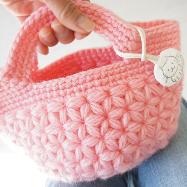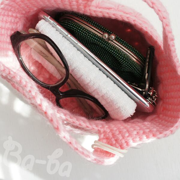 ばあばが編んだ、ちょっくらそこまでバッグ(リフ編み・桜色・CSB27)