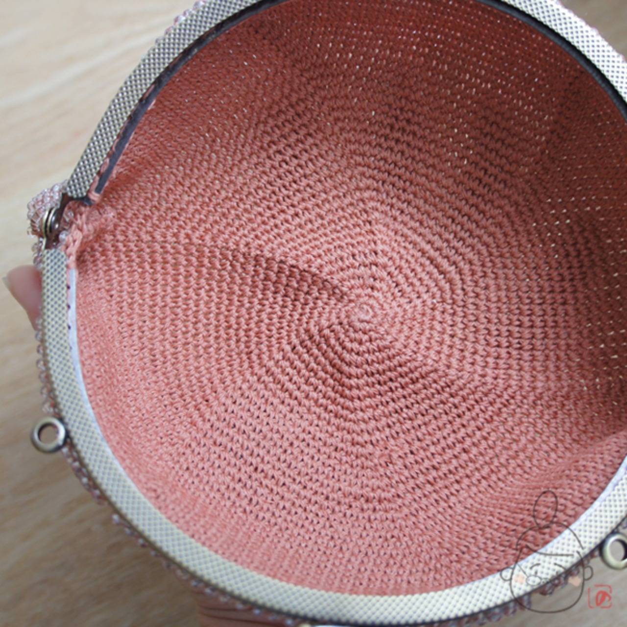 3mmのビーズをひとつぶづつ、全面に編み込みました。