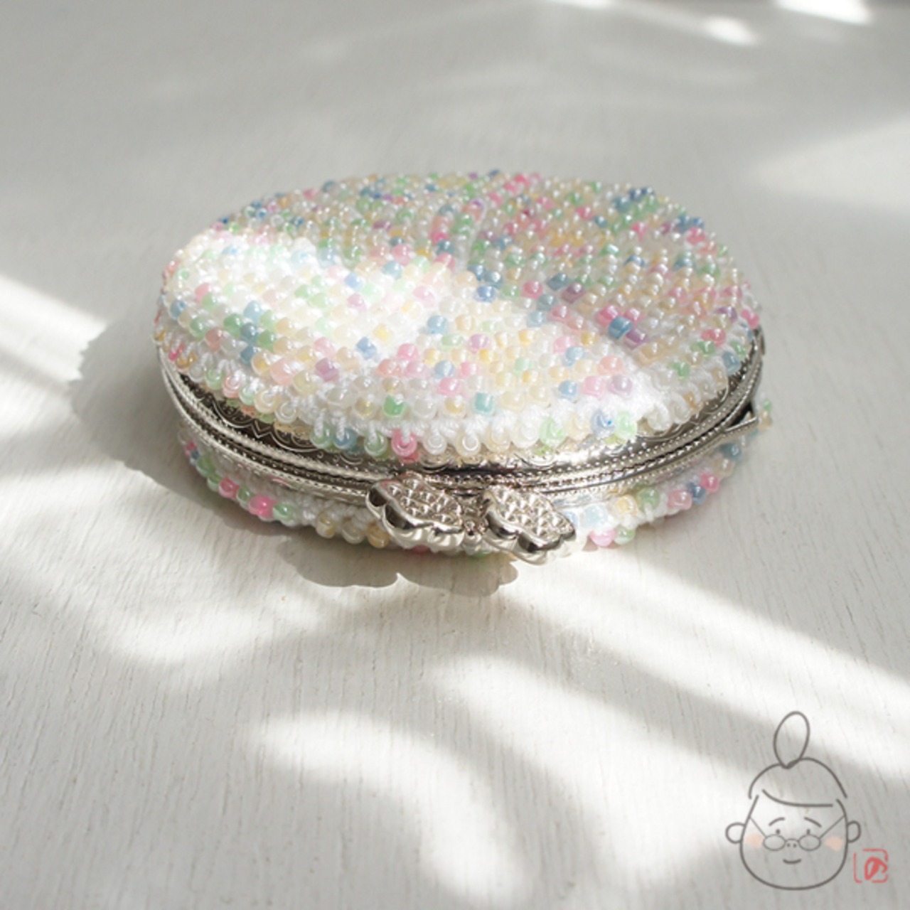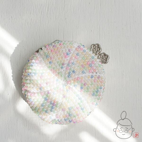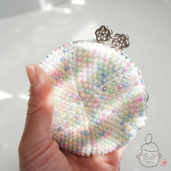 ばあば作♥ガラスビーズのまんまるがま口(pastelflower・1187)