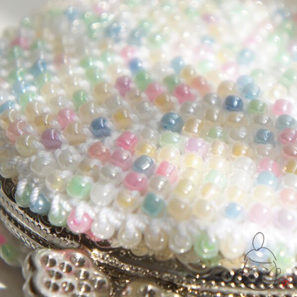 3mmのビーズをひとつぶづつ、全面に編み込みました。
