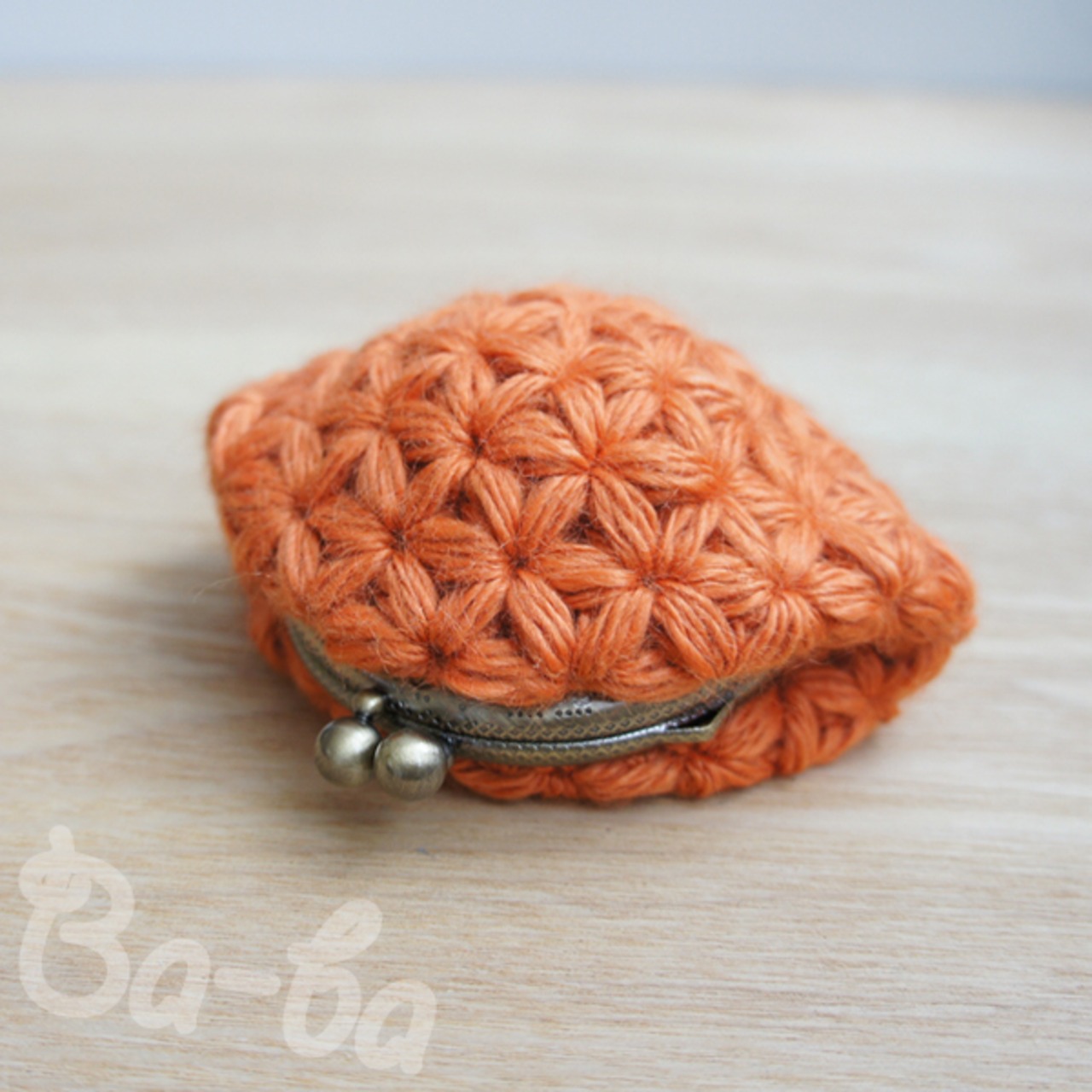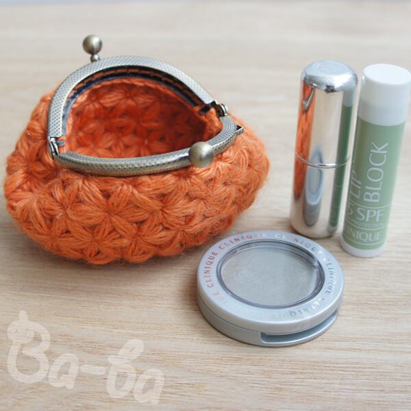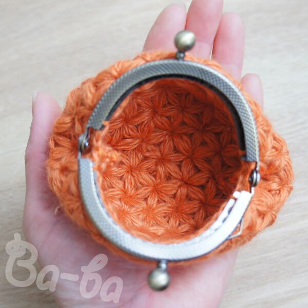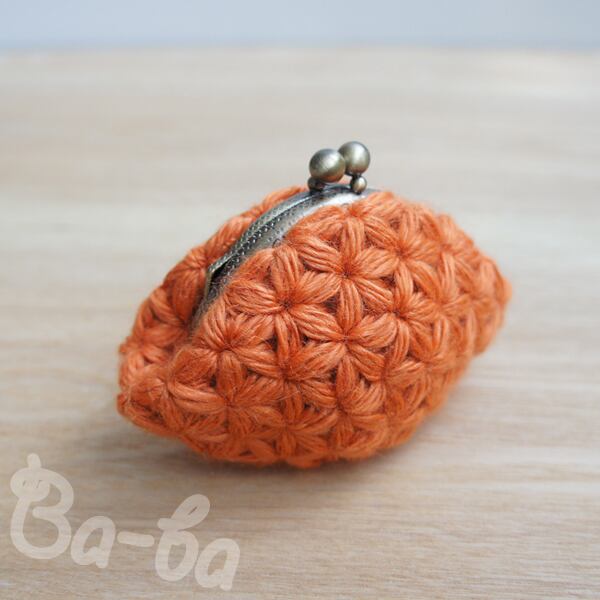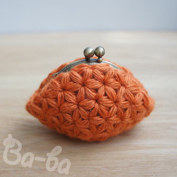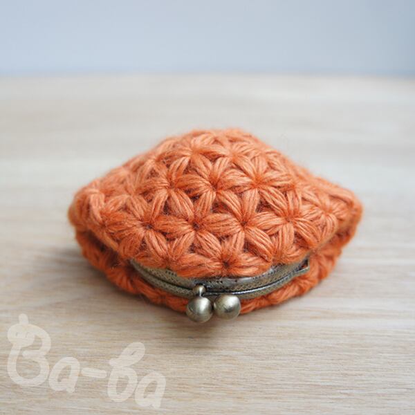 ばあば作♪ふわっとリフ編みminiがま口(orange・C1154)