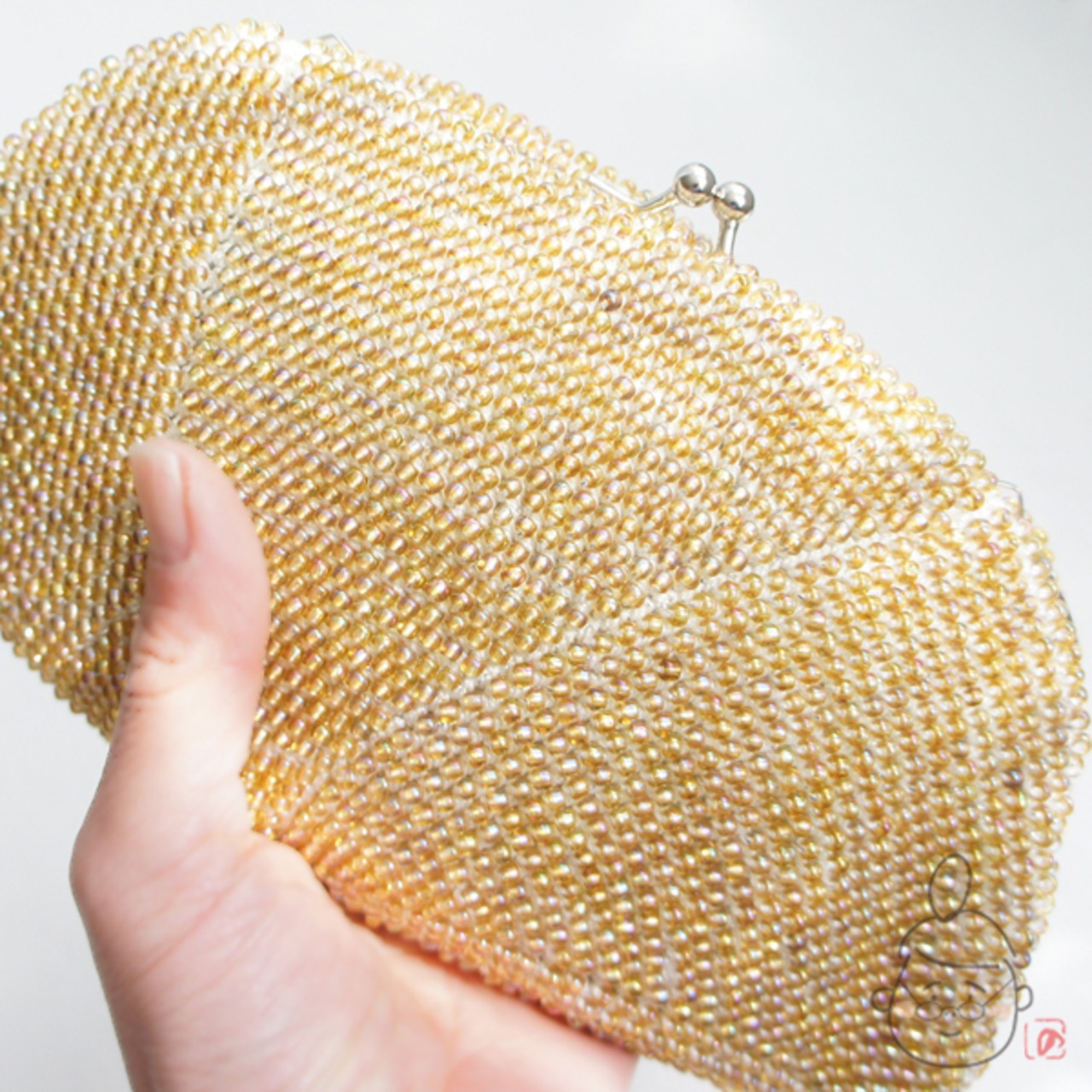 全体にガラスビーズを編み込み、