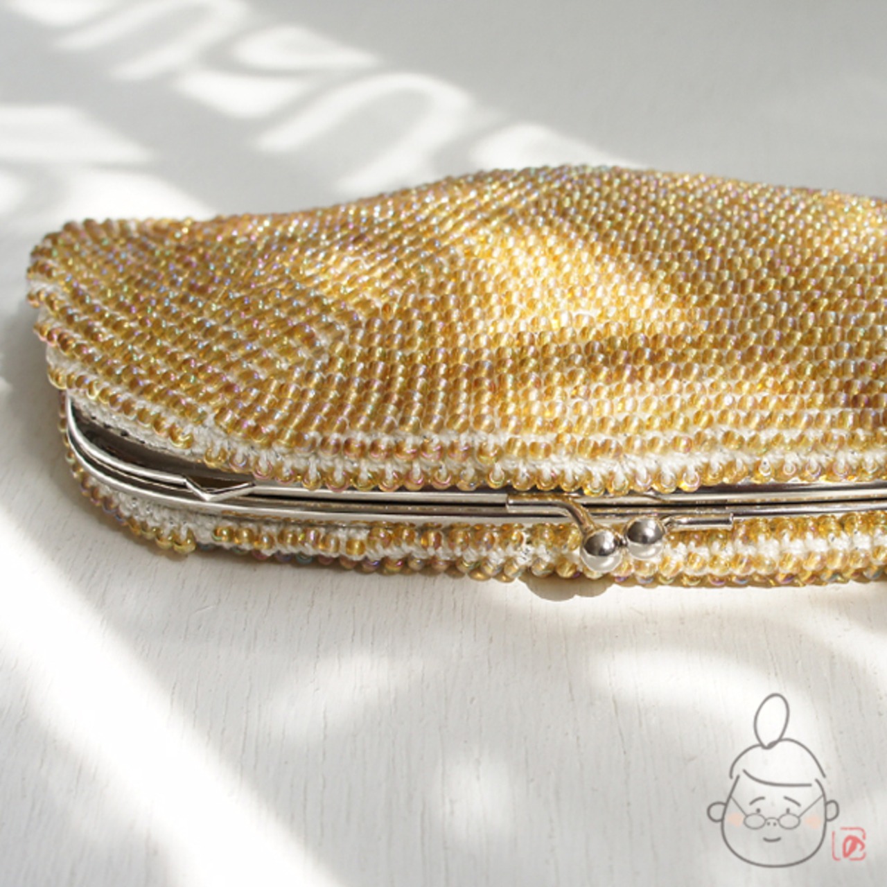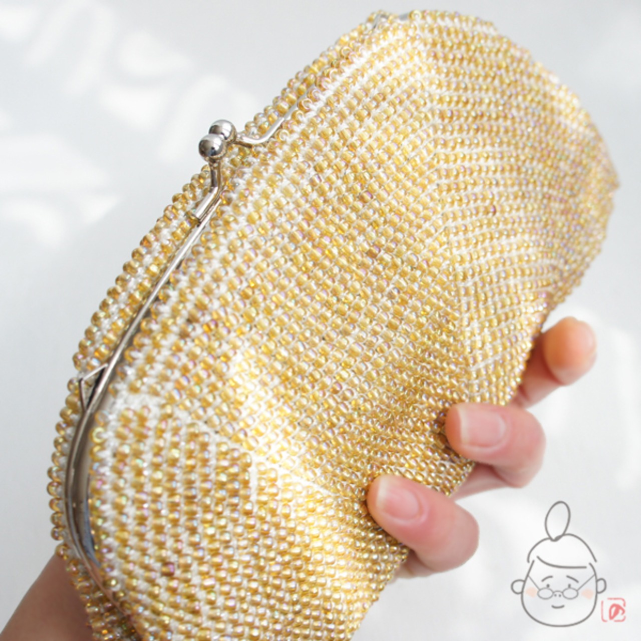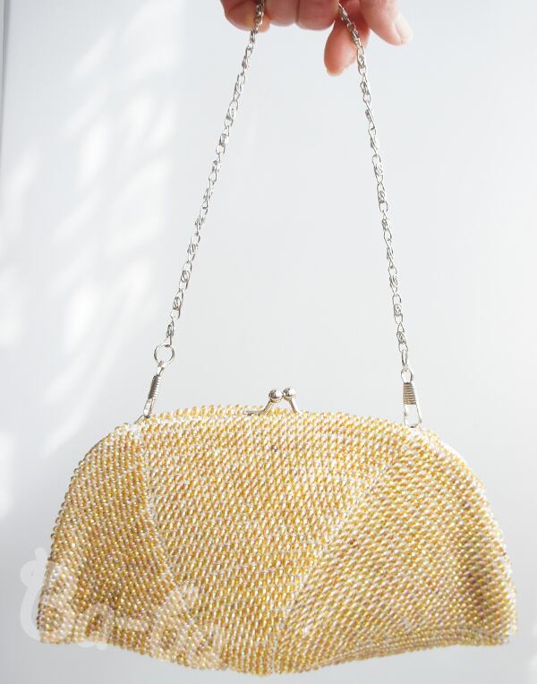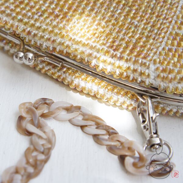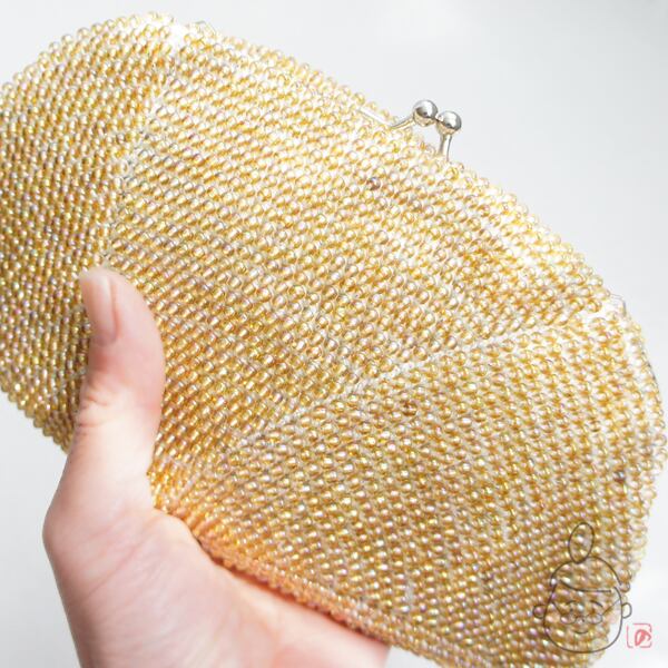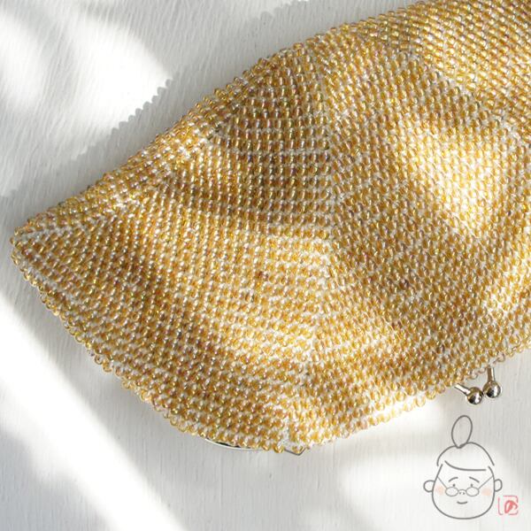 ばあば作☆キラキラ☆☆ガラスビーズのハンドバッグ( amber・1191)