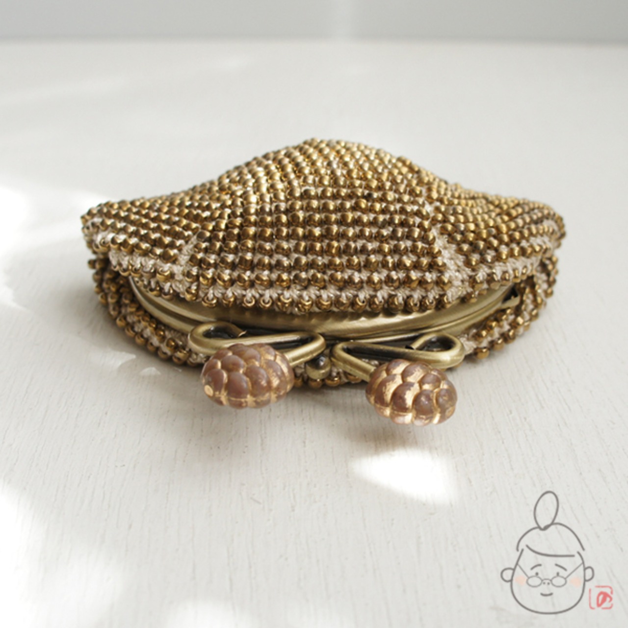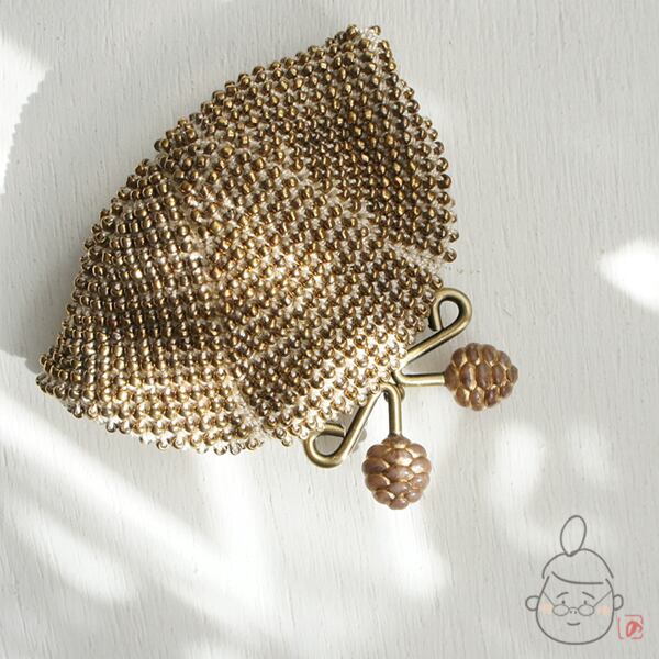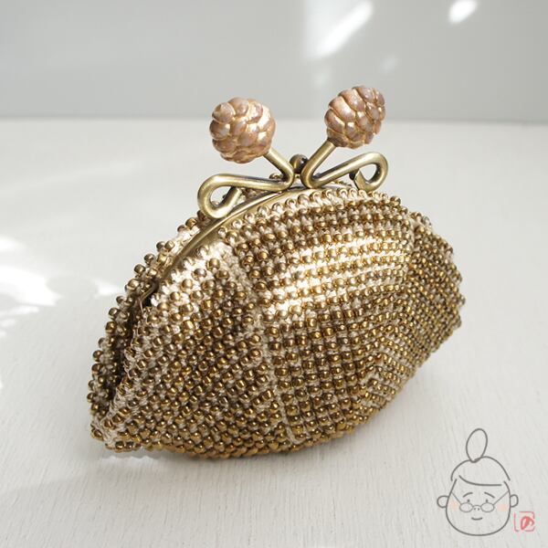 ばあば作☆☆総ガラスビーズのがま口(Pinecone・1173)