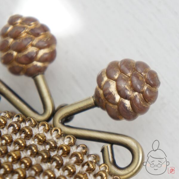 口金 : アンティークゴールド×松ぼっくりつまみ、8.5cm、半円